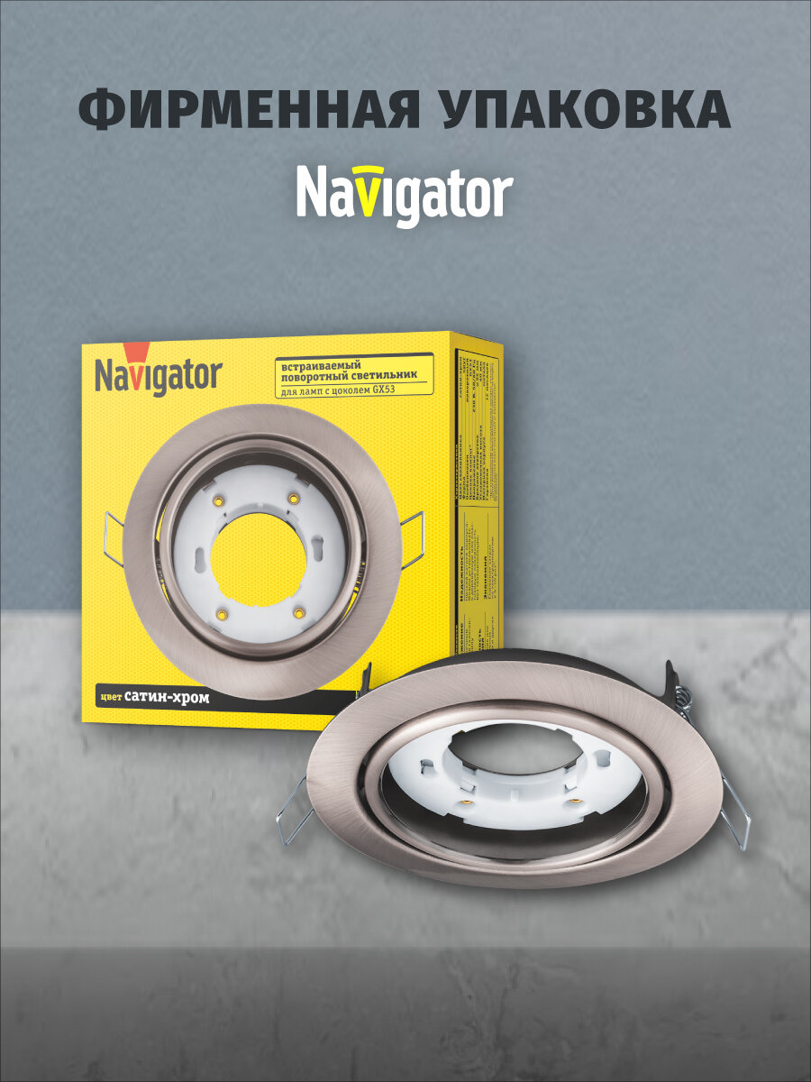 Ниже Вы можете прочитать отзывы на Светильник поворотный Navigator 93 033 для ламп с цоколем GX53, сатин-хром, ознакомится с подробными характеристиками, посмотреть интересные обзоры и фотографии на Светильник поворотный Navigator 93 033 для ламп с цоколем GX53, сатин-хром.