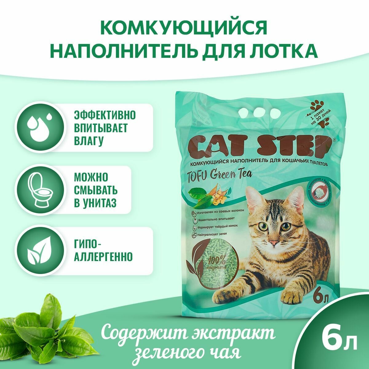 Cat Step Tofu Green Tea наполнитель для кошачьих туалетов растительный комкующийся - 6 л
