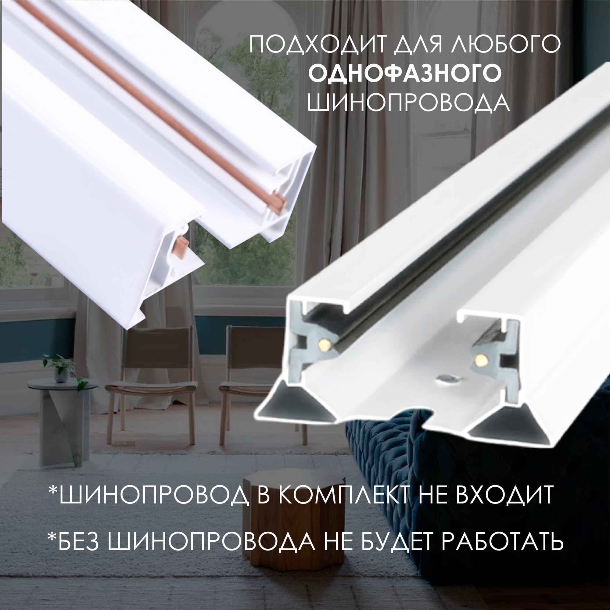 Трековые светильники на шинопроводе Светкомплект Шинопровод однофазный Светкомплект белый 1м