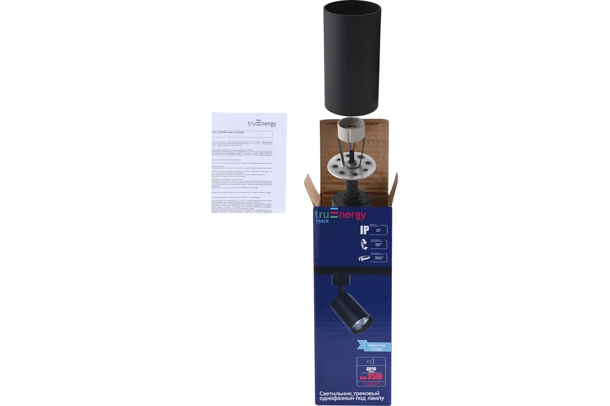 TruEnergy Светильник трековый однофазный под лампу GU10 55x155мм алюминий IP20 круг черный 21115 интересное: