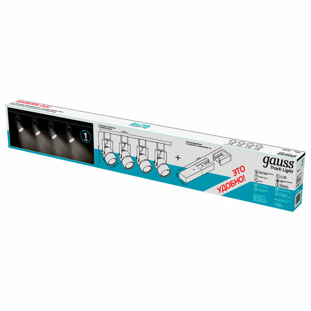Трековый светильник белый Gauss готовый комплект 4 светильника GU10 220V + шинопровод 1м