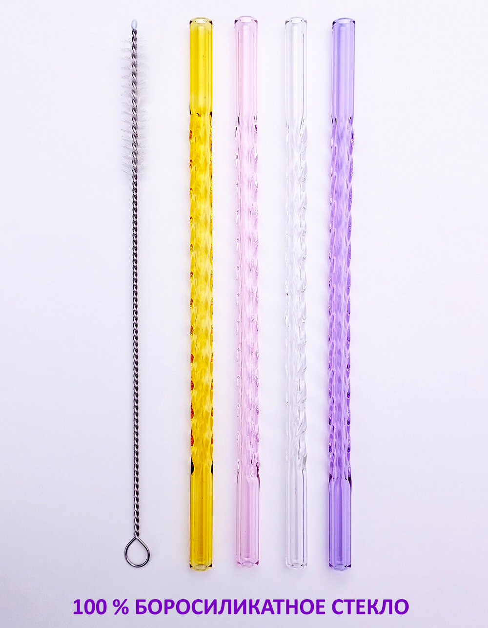 СохранитьСтеклянные трубочки для коктейлей и напитков фигурной формы цветные многоразовые 20 х 0,8 см. 4 шт + 1 ёршик интересное: