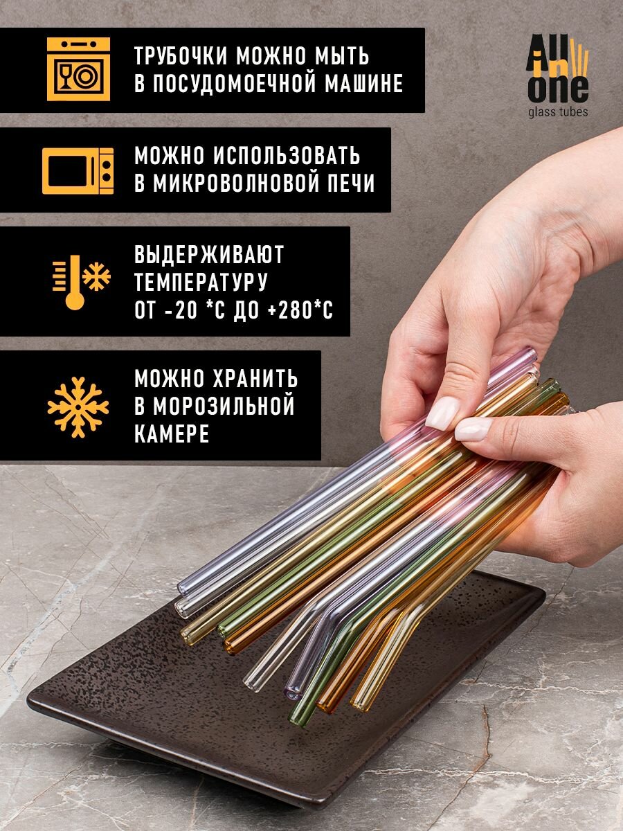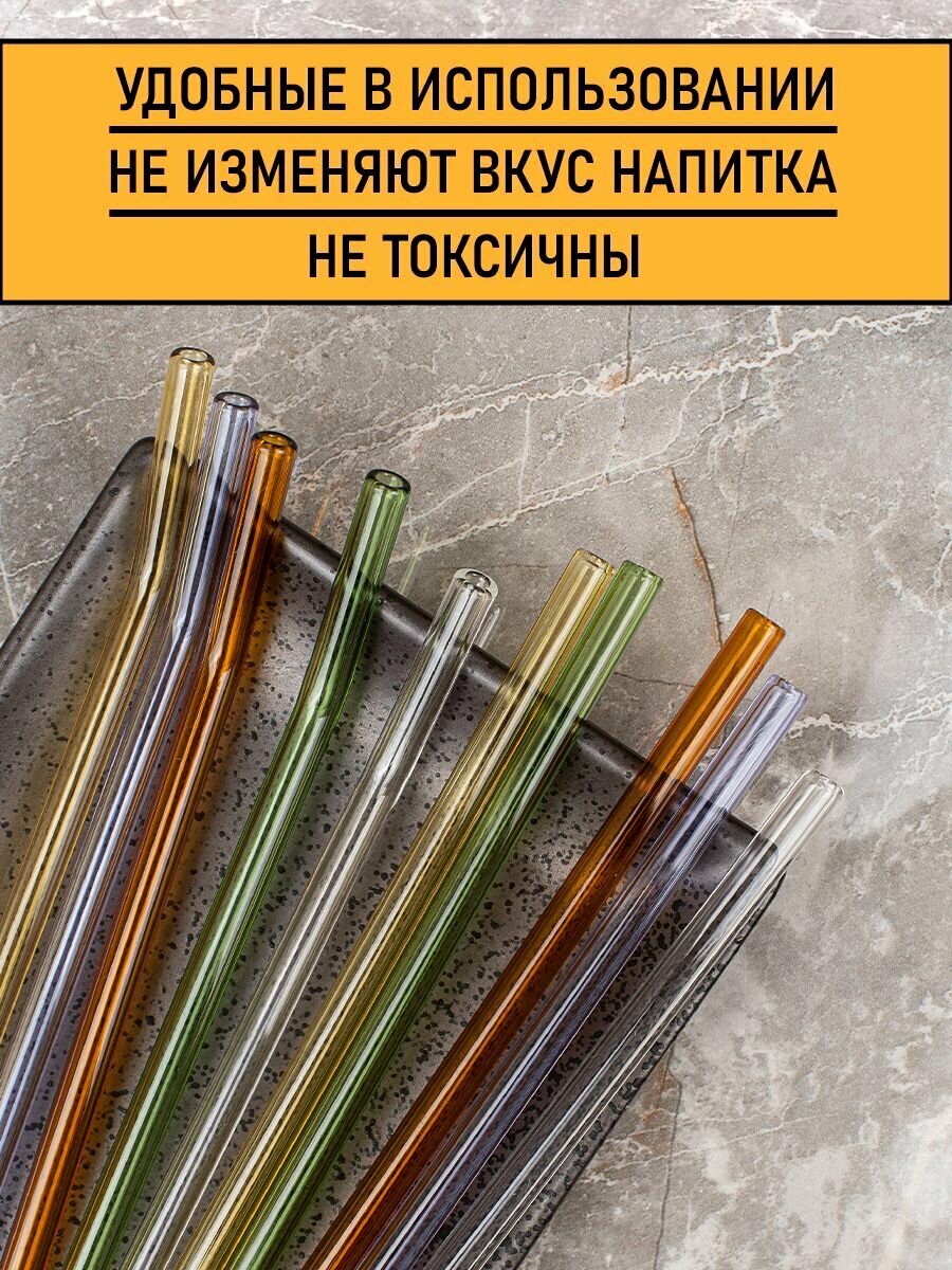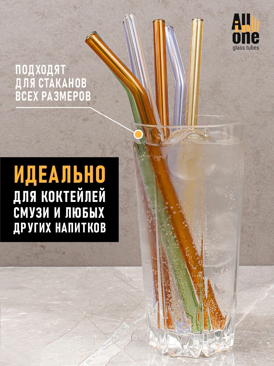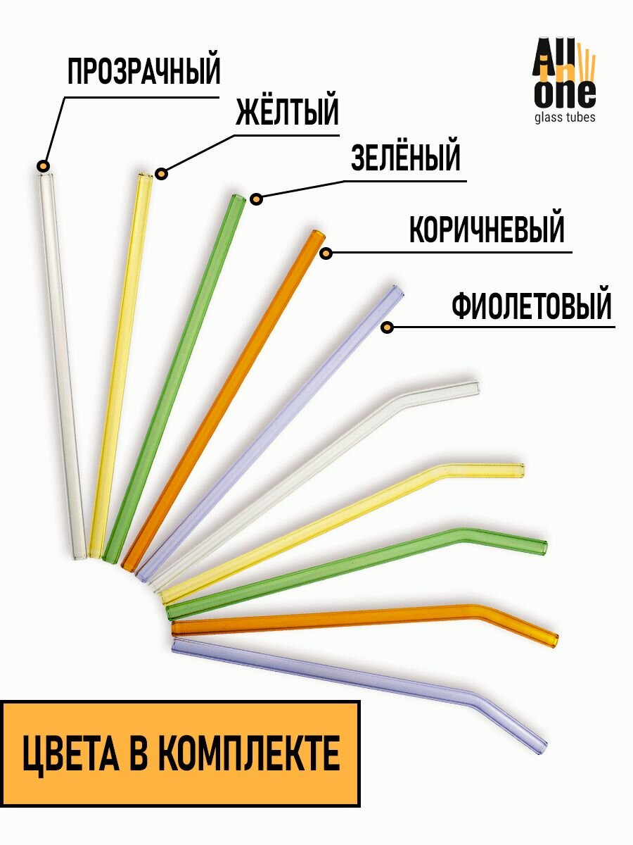 Многоразовые стеклянные эко-трубочки All in One для коктейлей, напитков с ёршиком, прямые/изогнутые, цветные, 10+1 интересное: