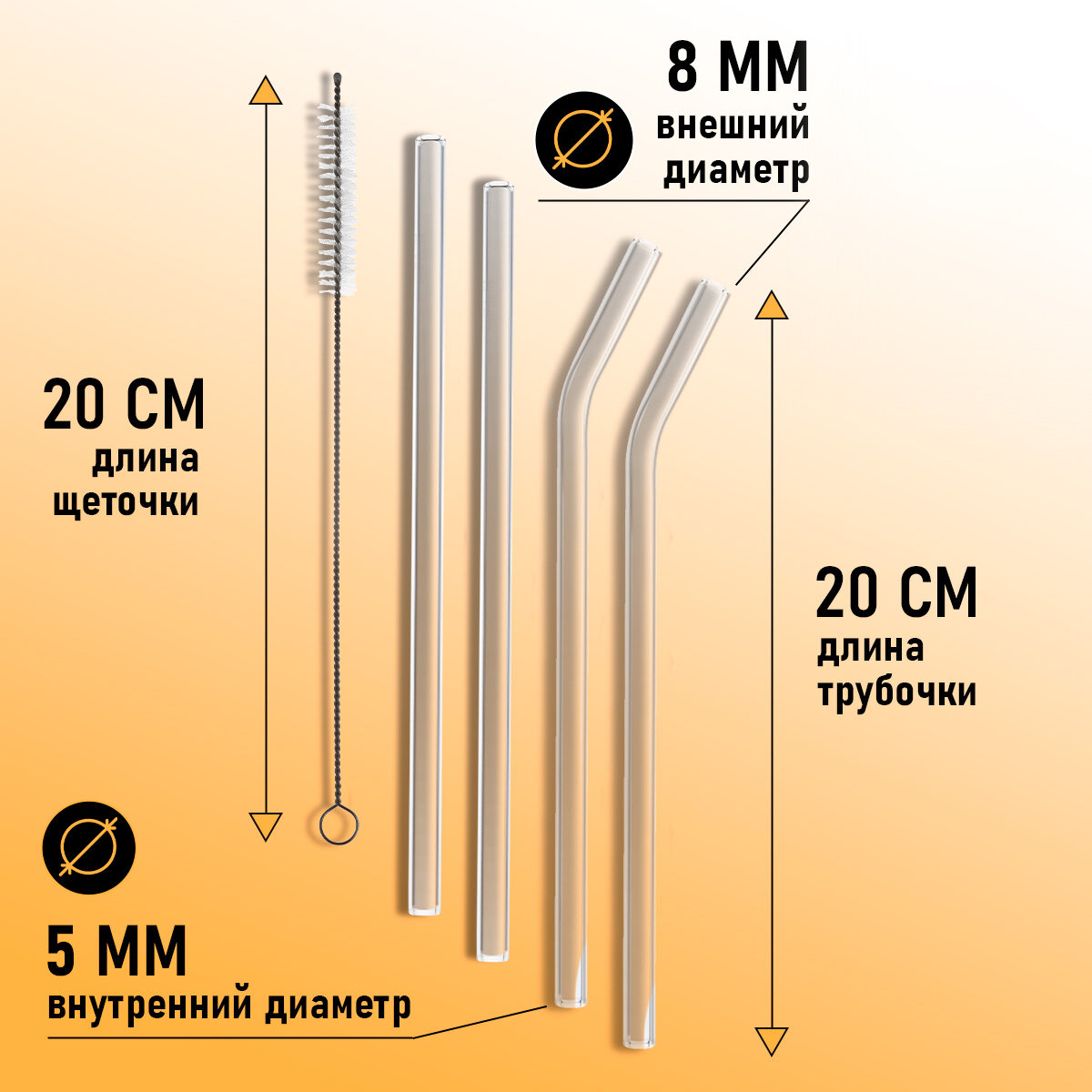 Многоразовые стеклянные эко-трубочки All in One для коктейлей, напитков с ёршиком, прямые/изогнутые, прозрачные, 10+1