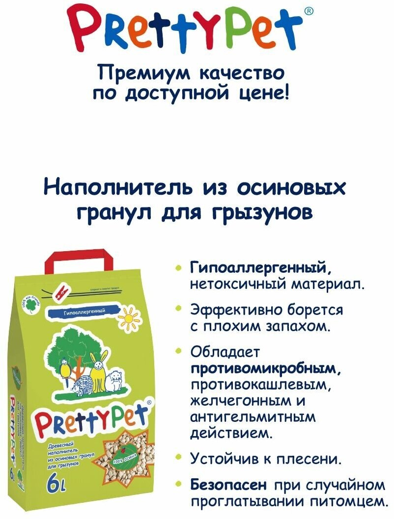 Наполнитель из осиновых гранул для грызунов и птиц Prettypet 6л/2 кг интересное:
