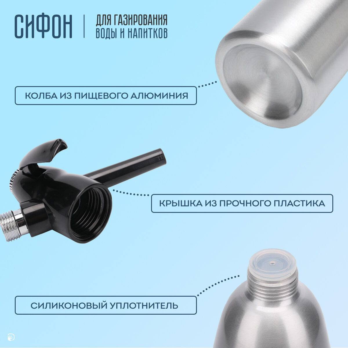 Сифон для газирования воды и напитков, 1л, серебристый