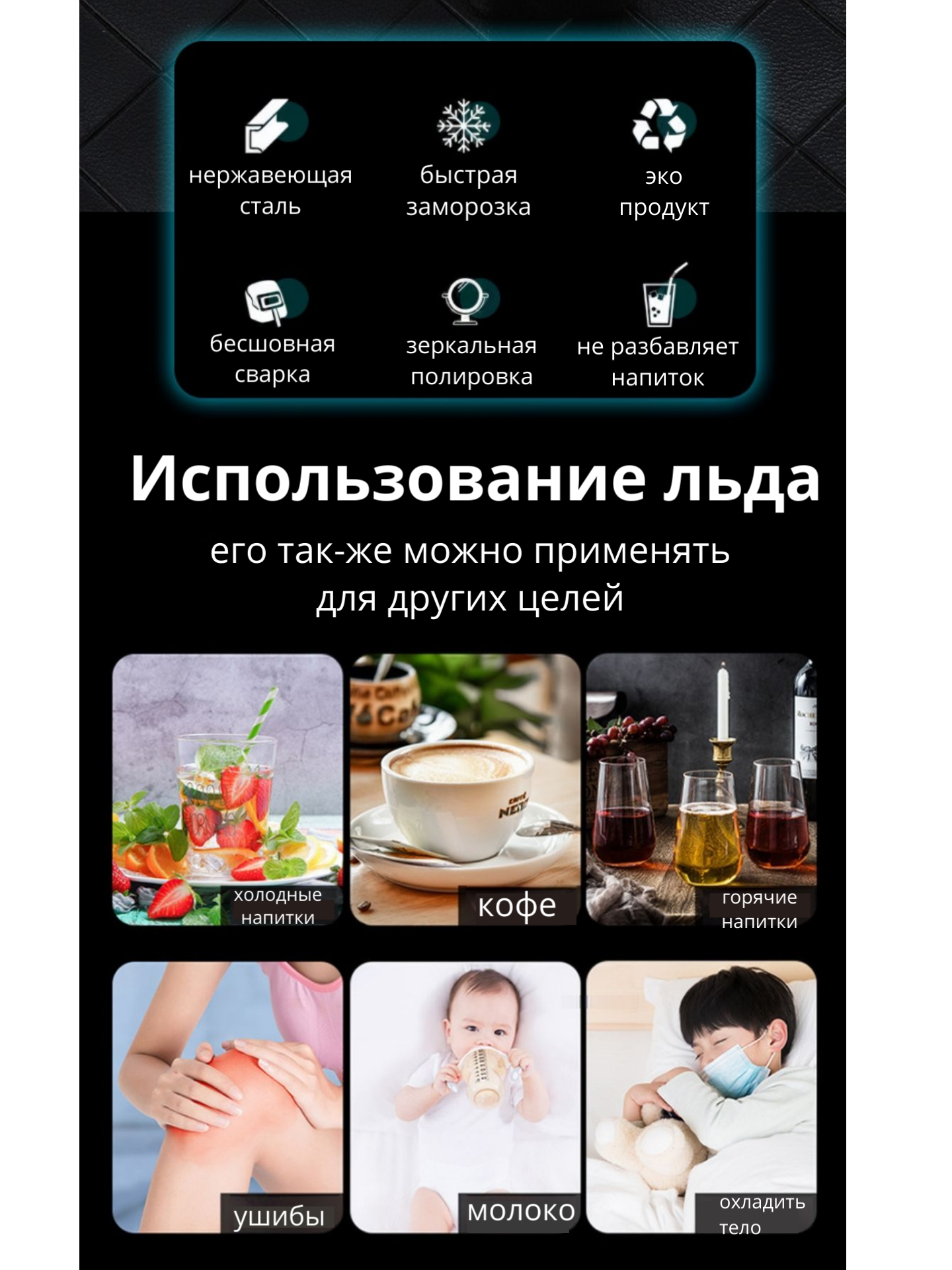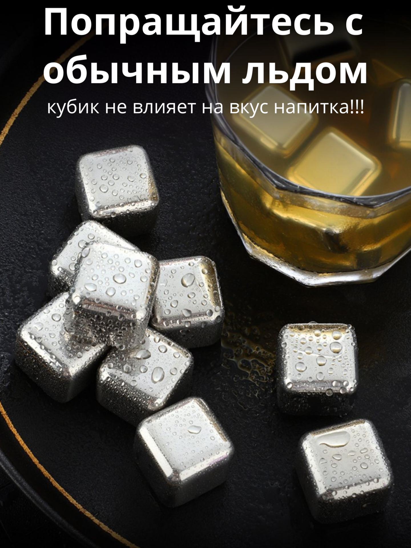 Лед многоразовый / Стальные камни для виски и коктейлей 8шт в наборе с щипцами и кейсом интересное: