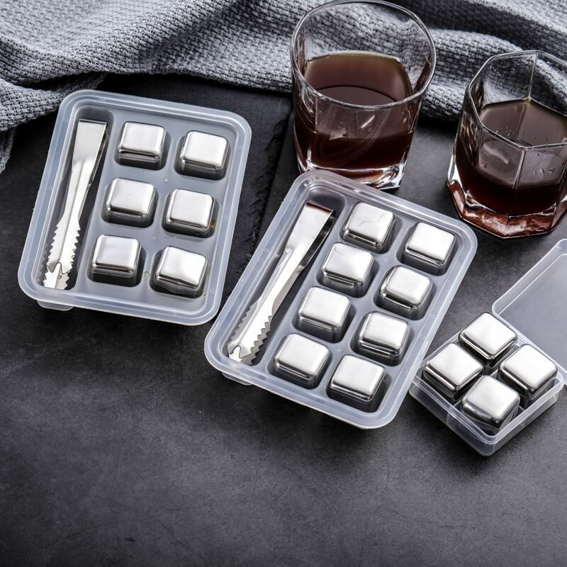 Лед многоразовый / Стальные камни для виски и коктейлей 6шт в наборе с щипцами и кейсом