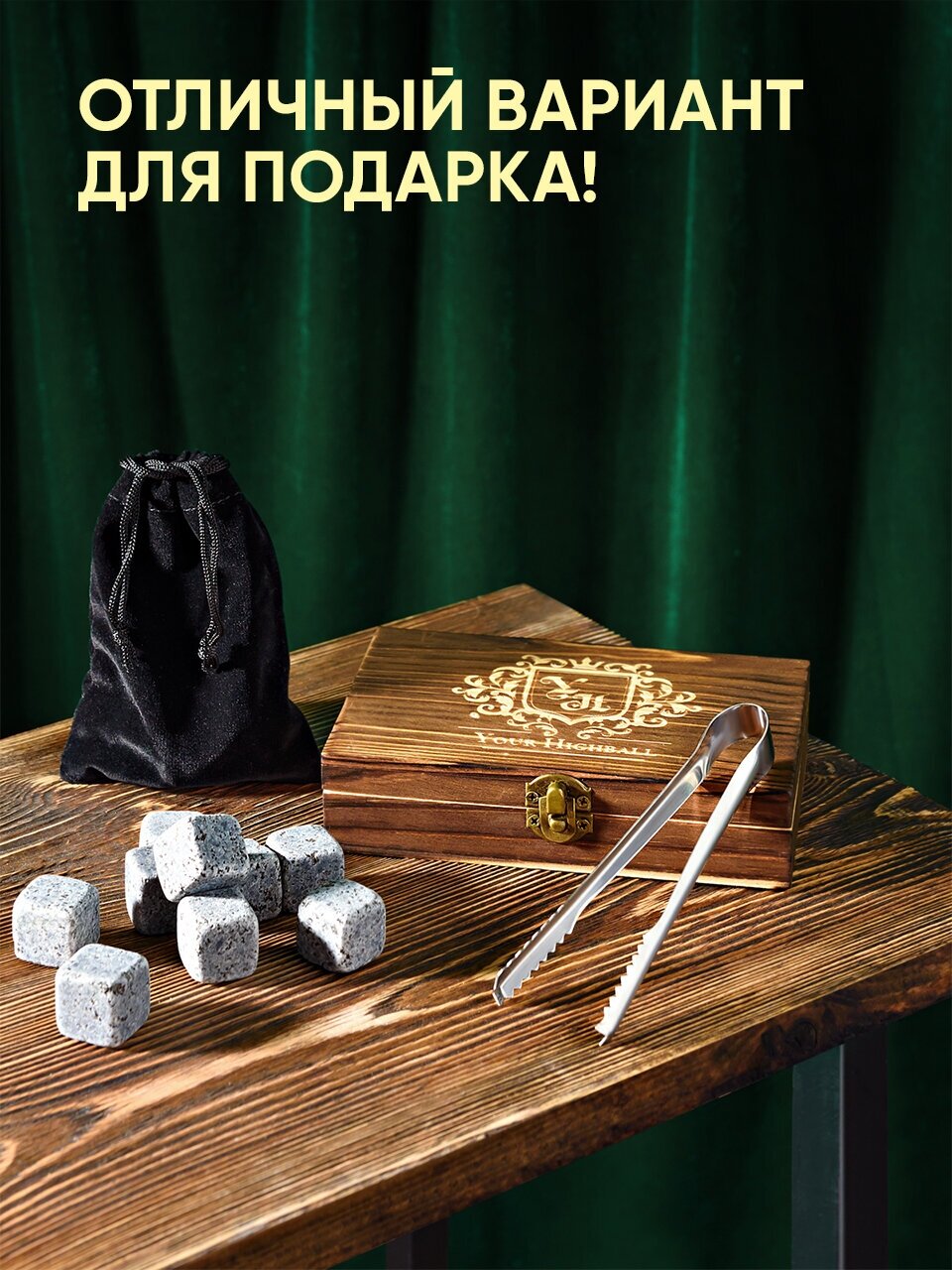 Подарочный набор камни для виски охлаждающие, Your Highball, набор для виски на деревянной подставке с щипцами