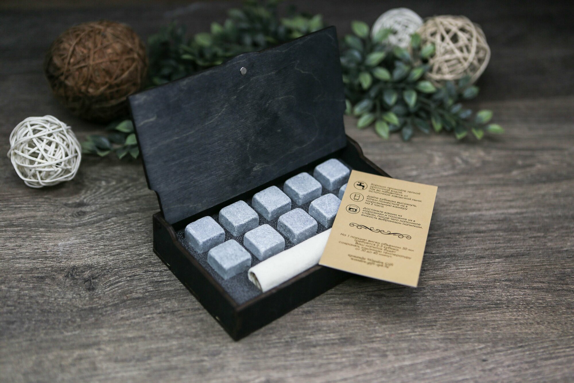 | Подробная комплектация | Деревянная коробка на магнитной защелке. 10 стеатитовых камней. Мешочек для хранения камней в морозилке. Инструкция на русском языке. |