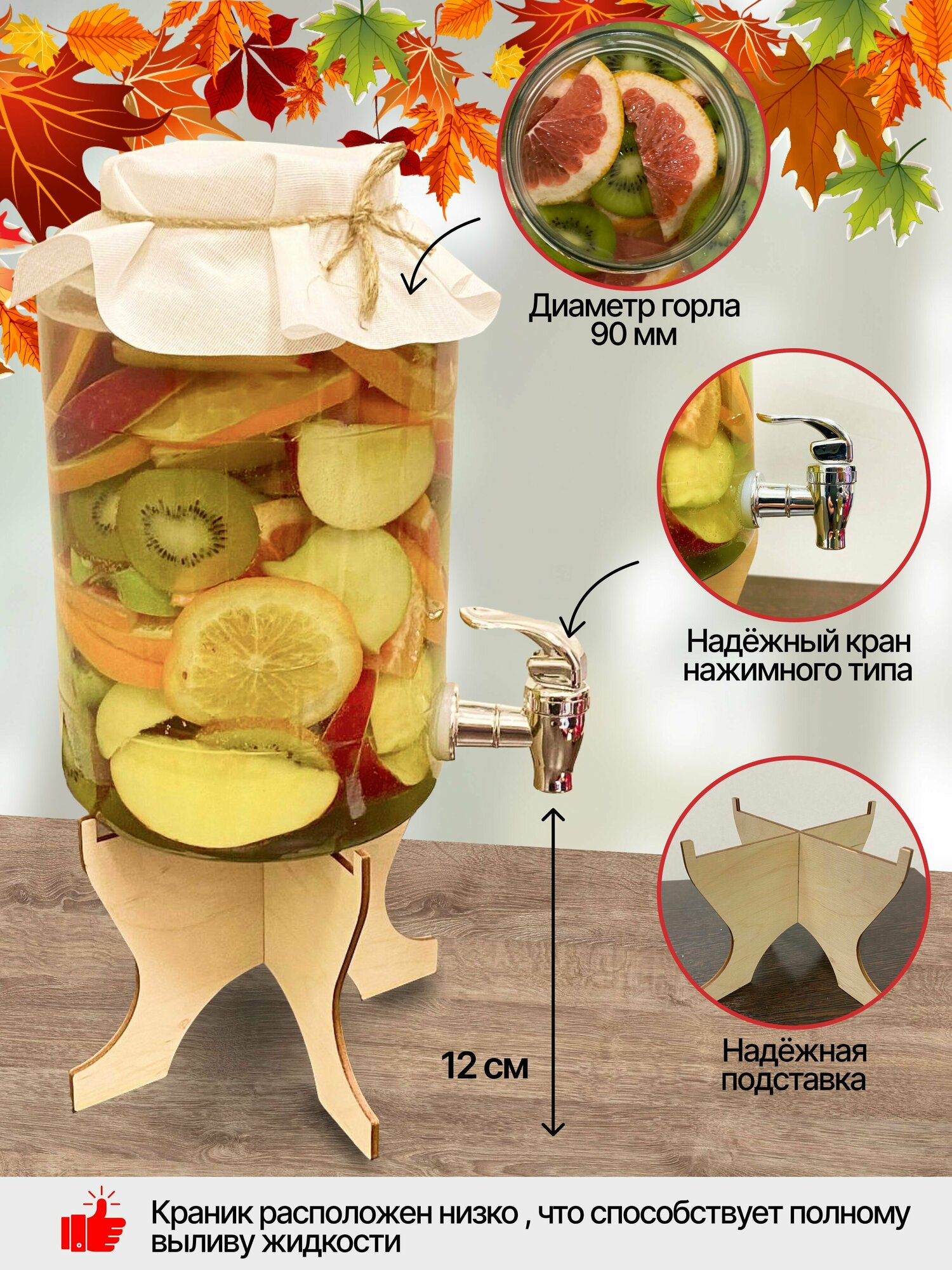 Лимонадница стеклянная на подставке Диспенсер для напитков интересное: