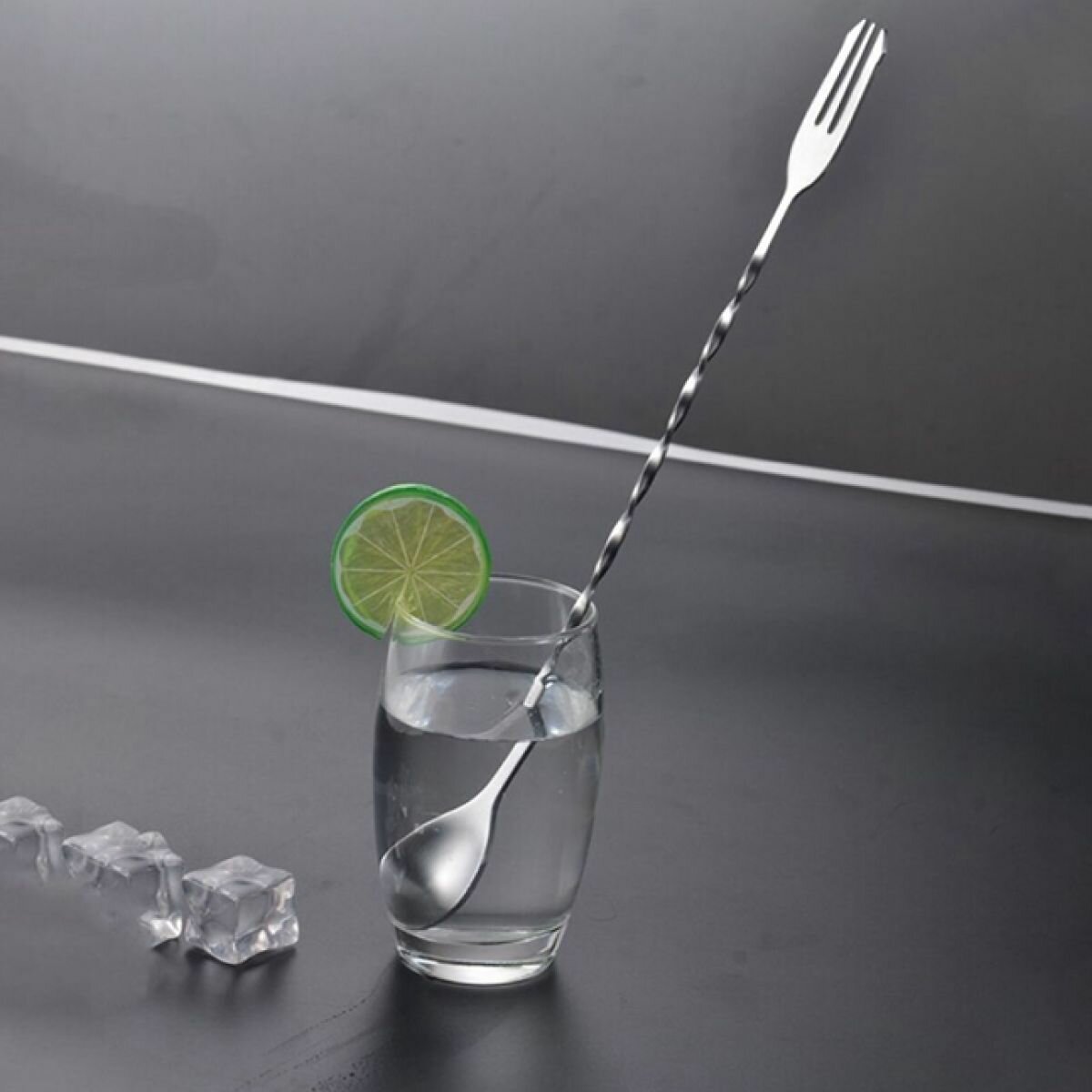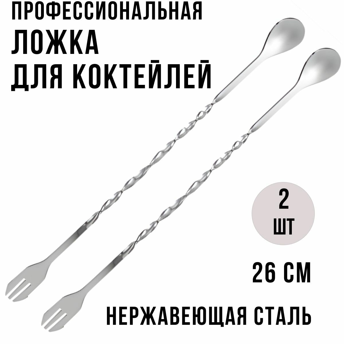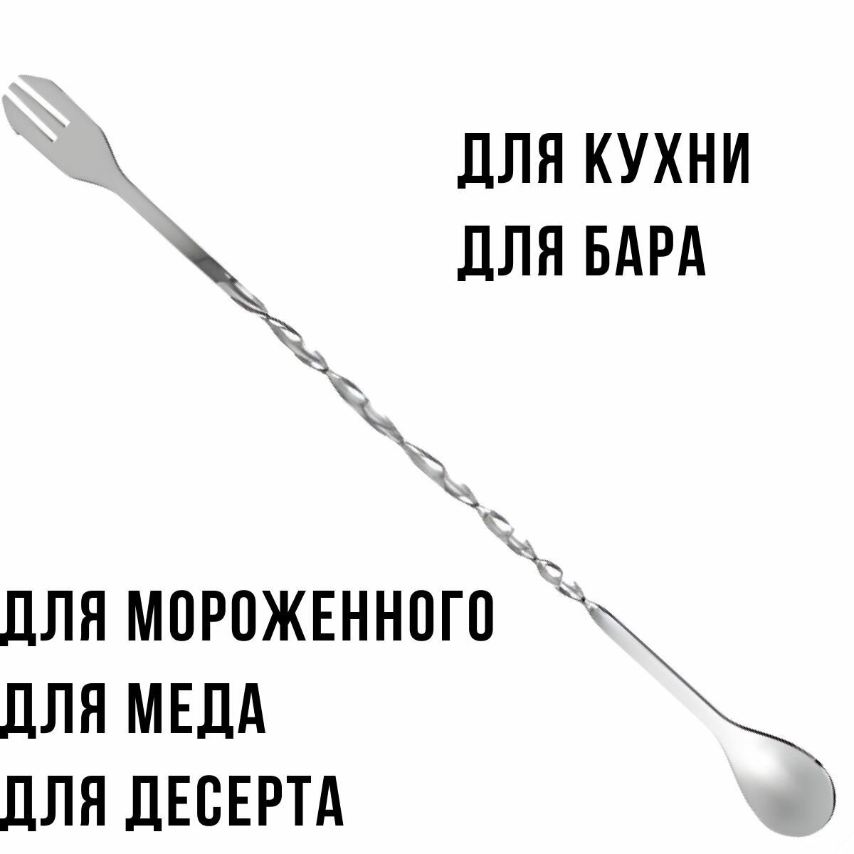 Длинная барная ложка для коктейлей с мадлером 26 см, с длинной ручкой для набора бармена, вилка трезубец для напитков, 2 штуки интересное: