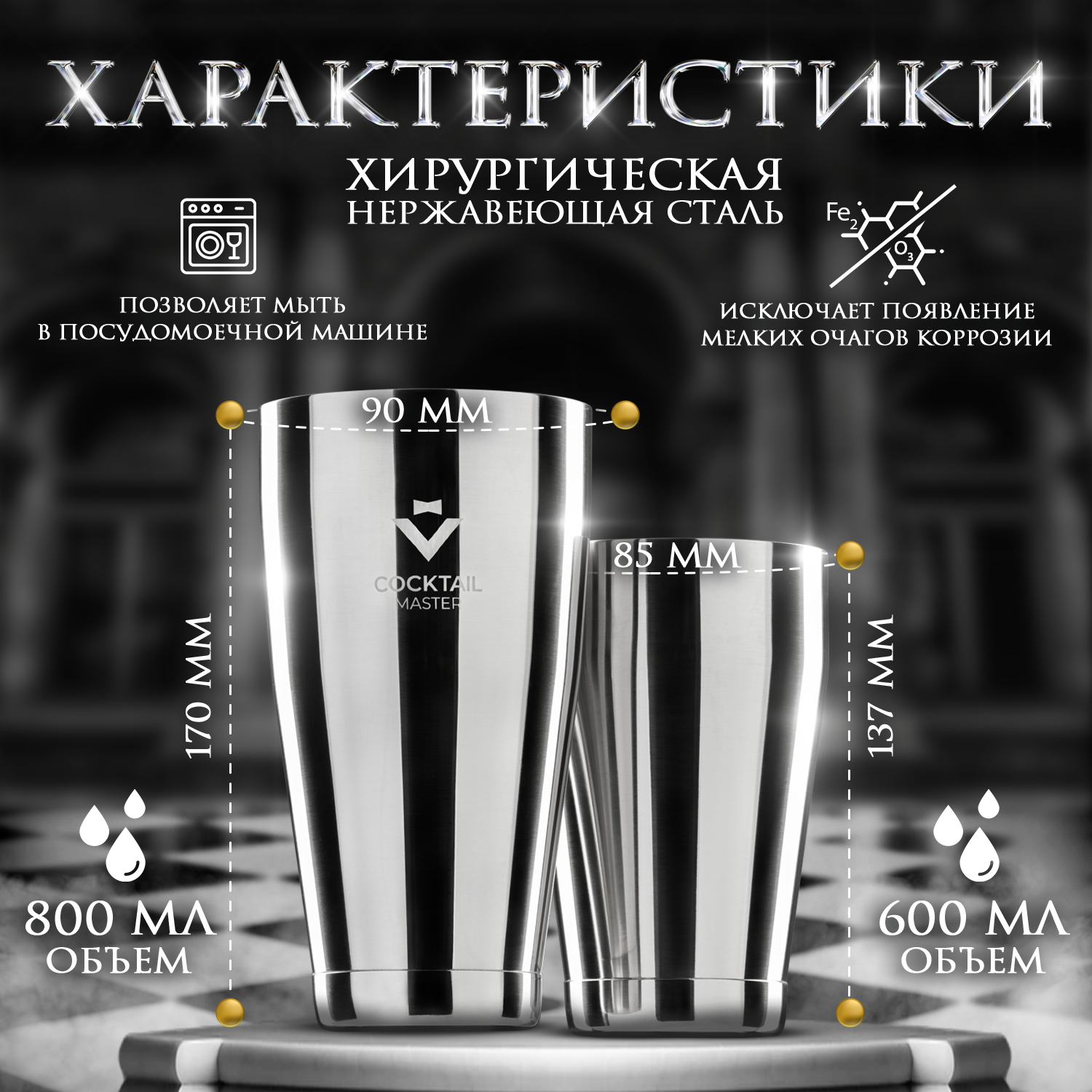 Шейкер барный «Бостон» 800/600 мл Профессиональный шейкер бармена от Cocktail Master интересное: