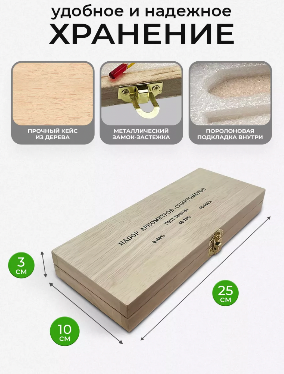 Набор спиртометров с мерным цилиндром стекло, дерево ГОСТ