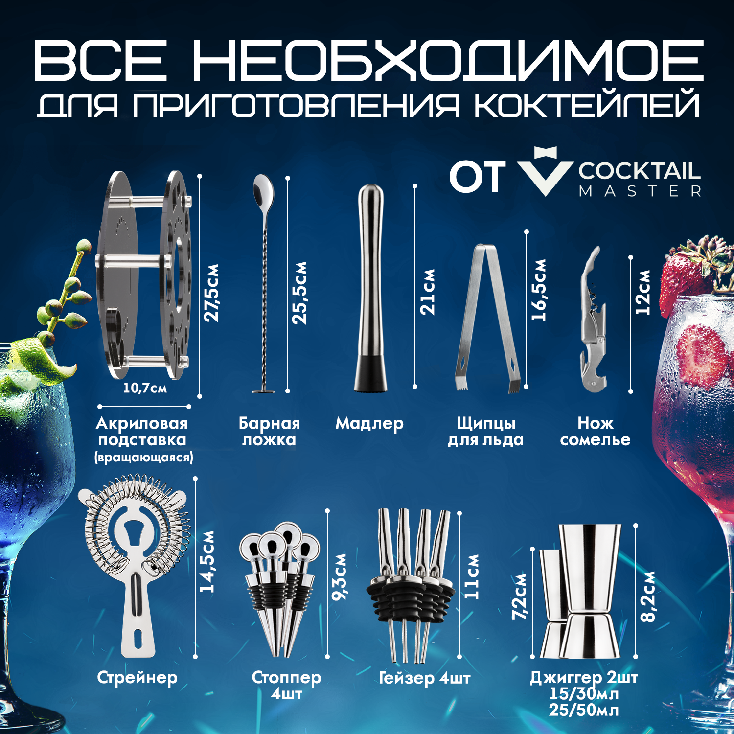 Набор бармена для приготовления коктейлей из 30 предметов «Коктейль Мастер Гуру» интересное: