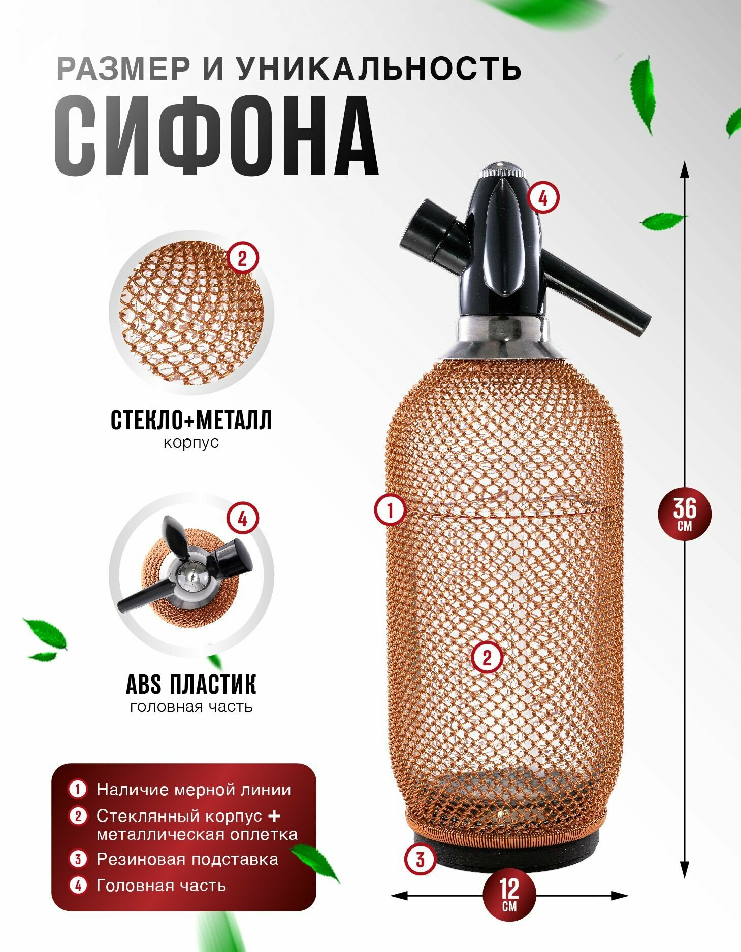 СохранитьСтеклянный сифон для газирования воды и приготовления лимонадов как в СССР, HAIDEL Classic 80, медная металлическая оплётка интересное:
