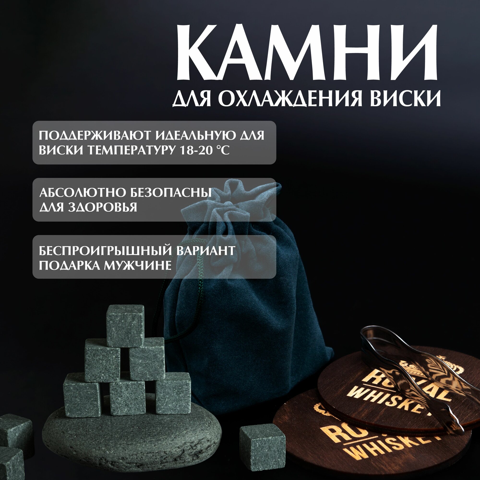 Камни для виски Artandwood кубики для охлаждения напитков Royal Whiskey в подарок мужчине 12 шт интересное: