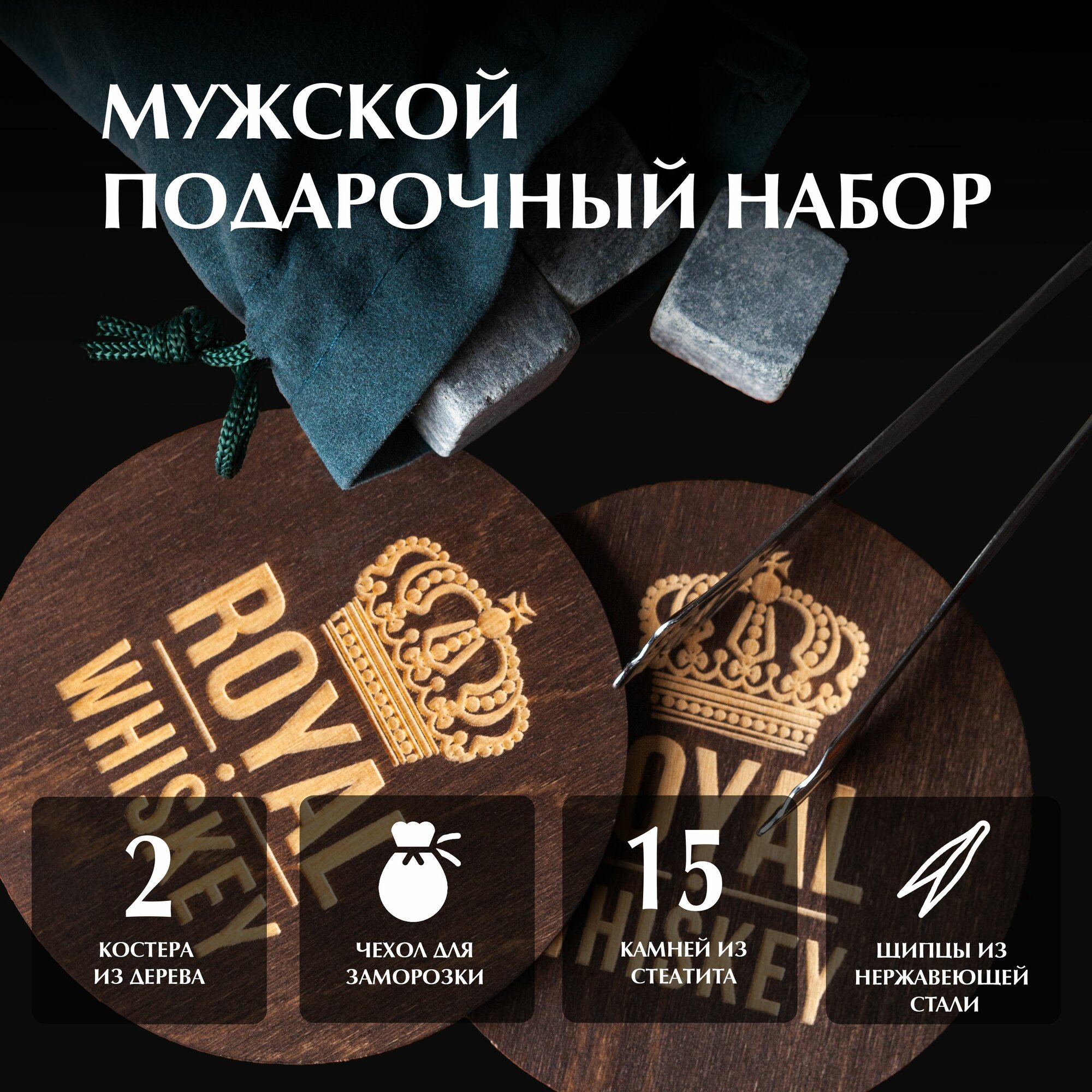 Купить Камни для виски Artandwood кубики для охлаждения напитков Royal Whiskey в подарок мужчине 12 шт