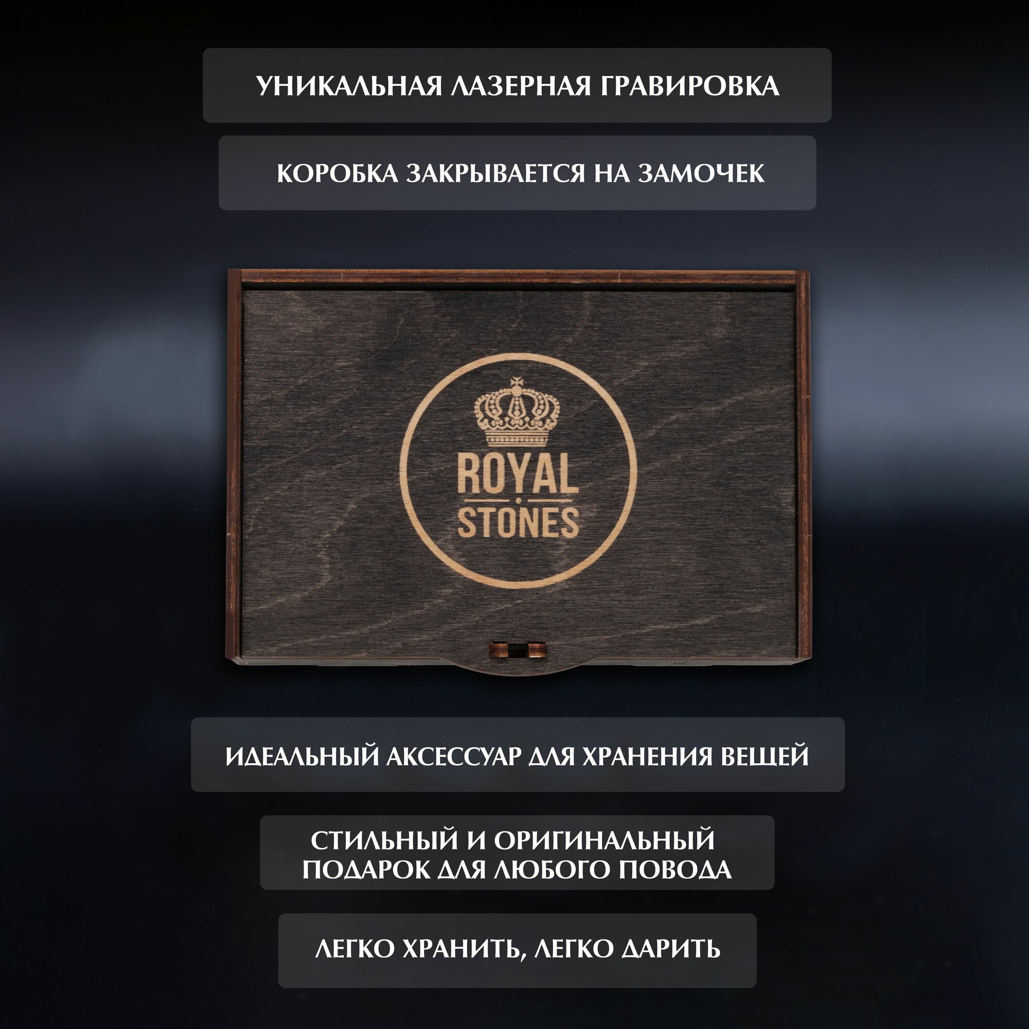 | Подробная комплектация | Эко-коробка, деревянная, подарочная, камни. |