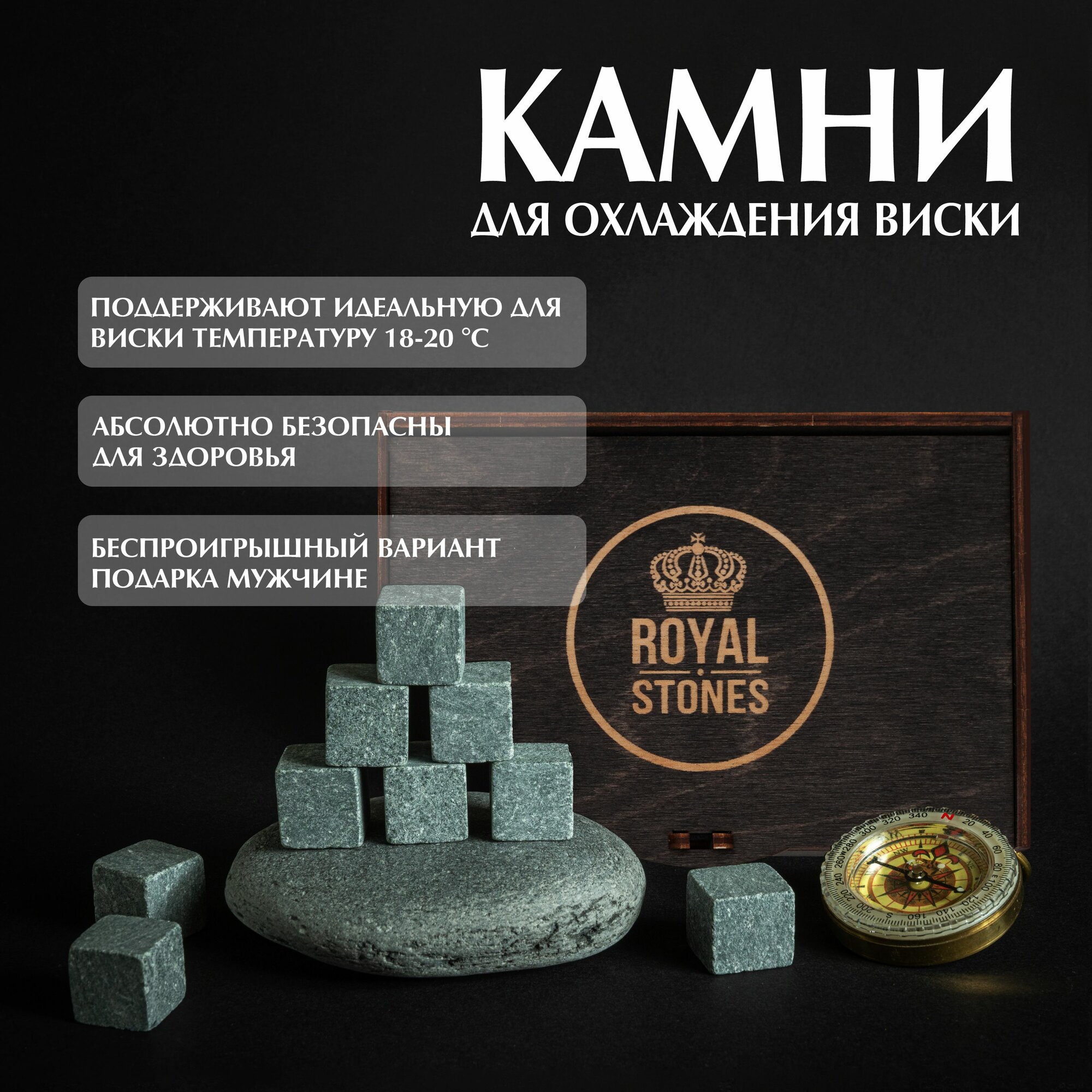 Камни для виски Artandwood кубики для охлаждения напитков Royal Whiskey в подарок мужчине 12 шт