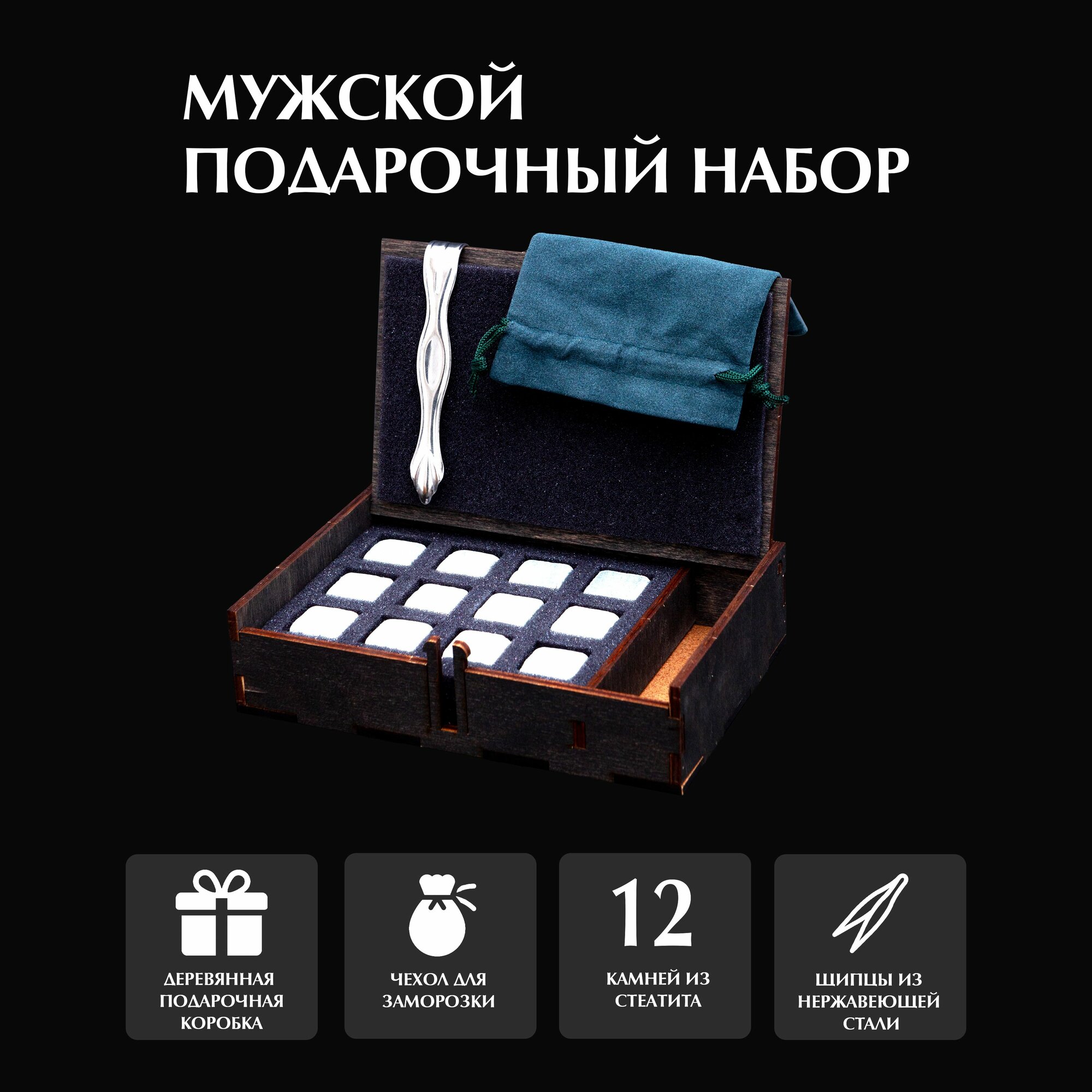 Камни для виски Artandwood кубики для охлаждения напитков Whiskey stones в подарок мужчине 12 шт интересное: