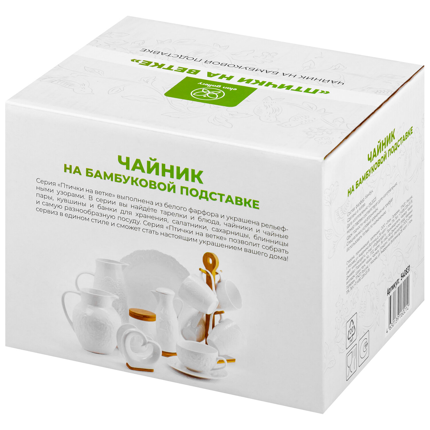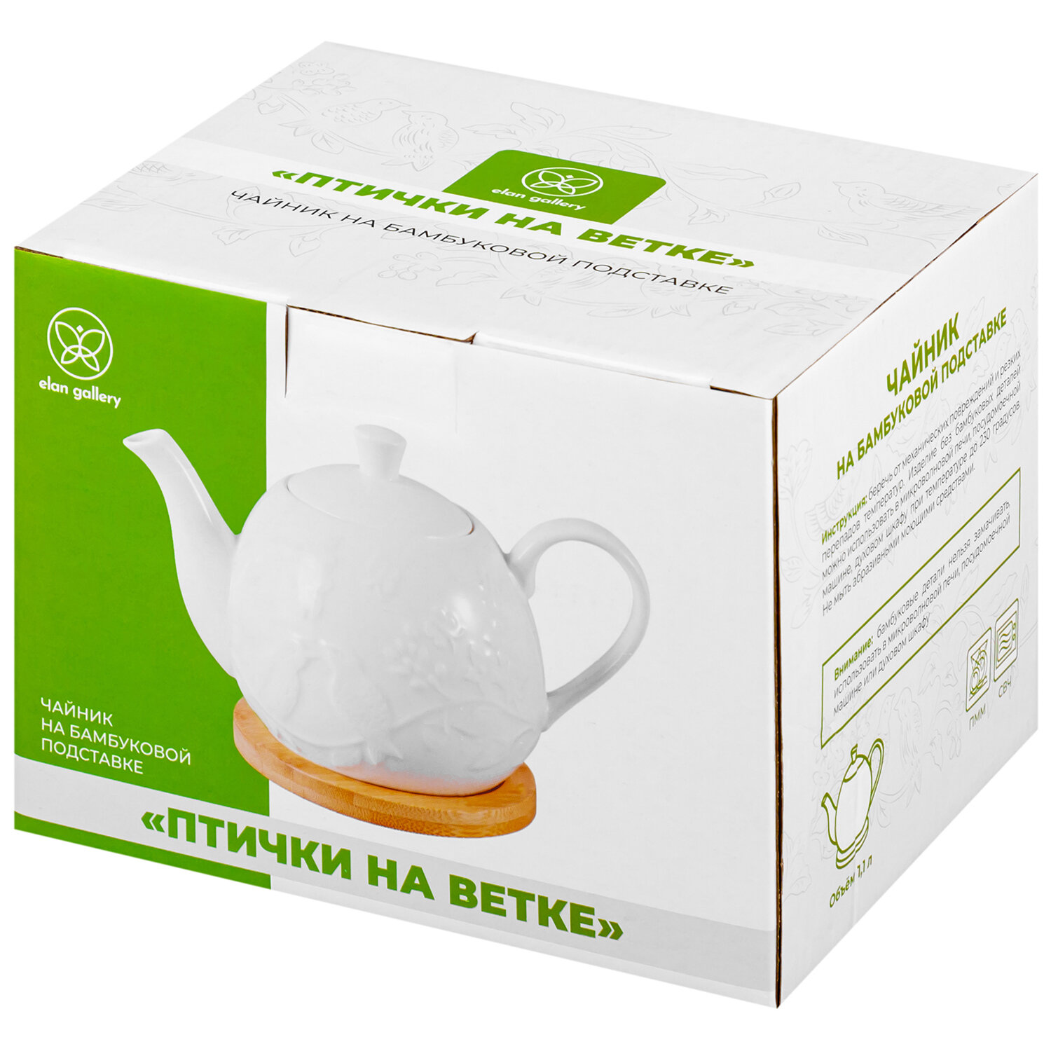 Купить Чайник заварочный 900 мл Elan Gallery Птички на ветке 21,5х13,5х14,5 см, на деревянной подставке