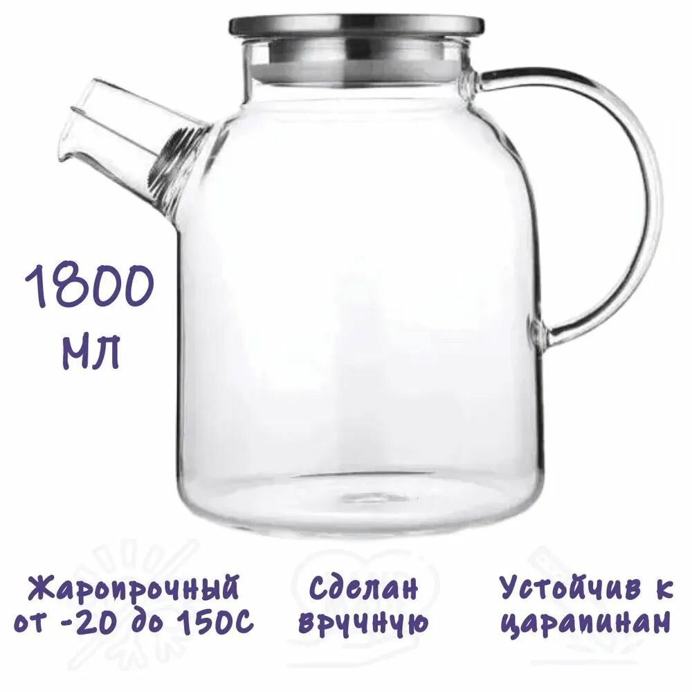 Чайник заварочный, Formula Tepla, со стеклянной крышкой и фильтром, объем 1800 мл. интересное: