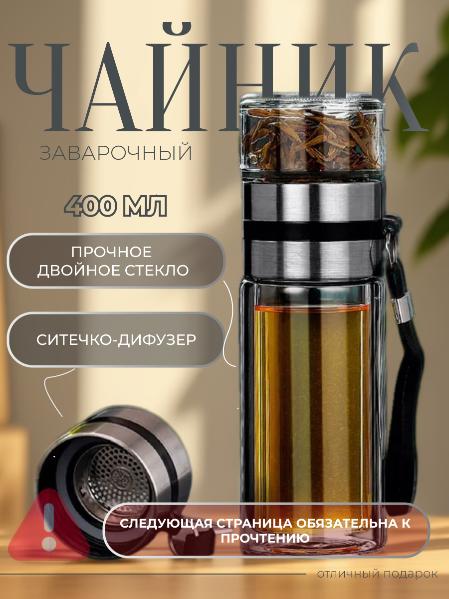 Заварочный чайник стеклянный/ Заварник для чая/ Термостакан/ Кружка заварочная/ Бутылка для чая интересное: