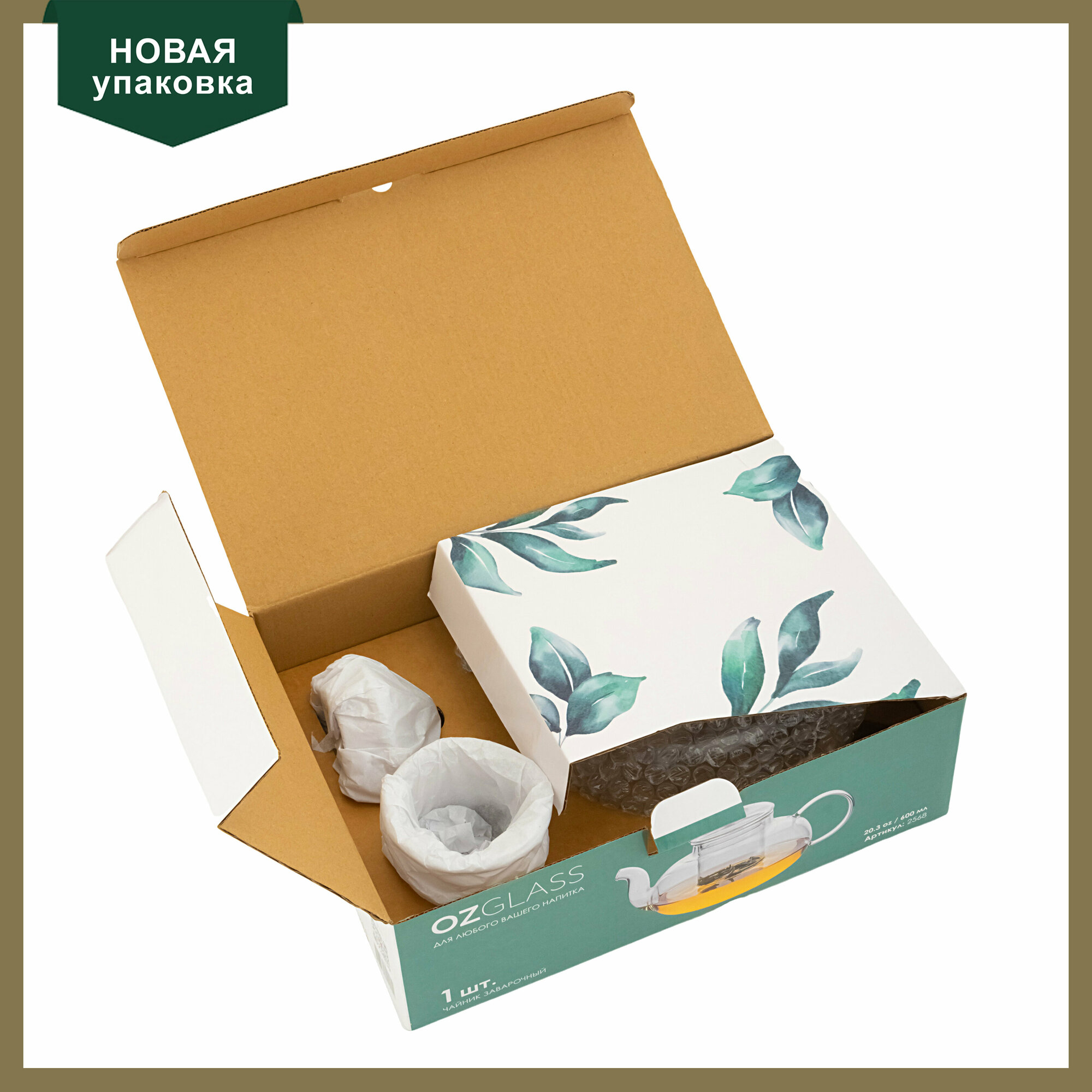 Чайник заварочный OZGLASS Танг Пу, стекло, подарочная упаковка, 600мл