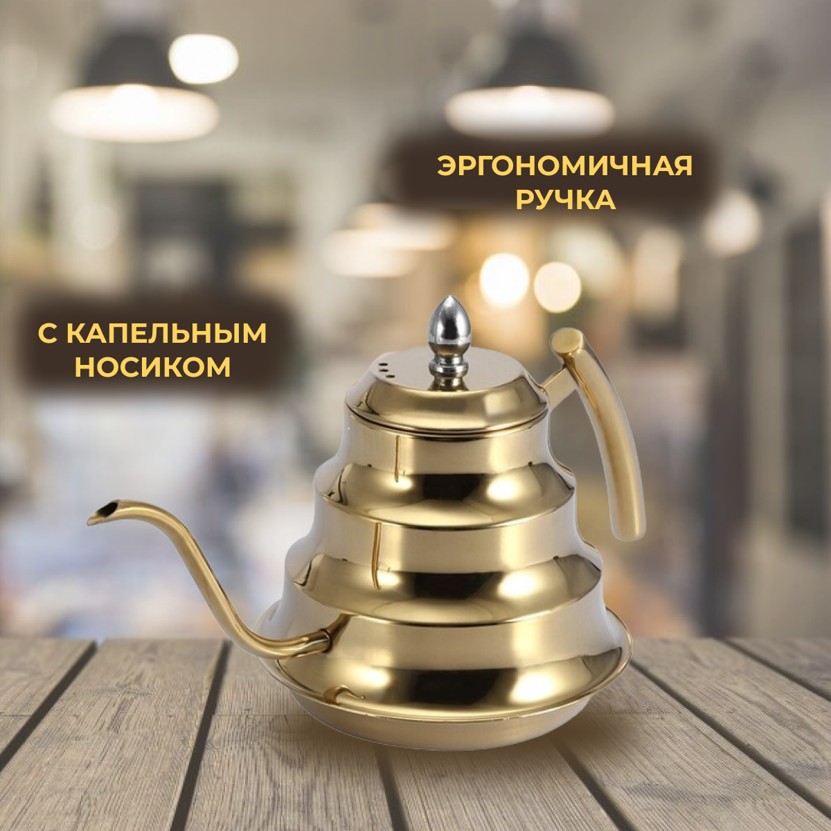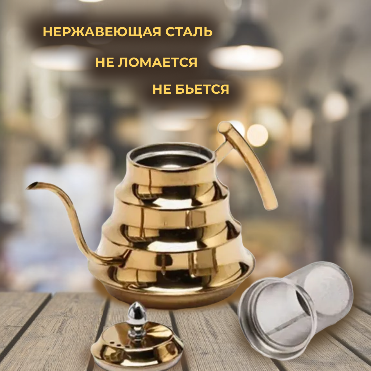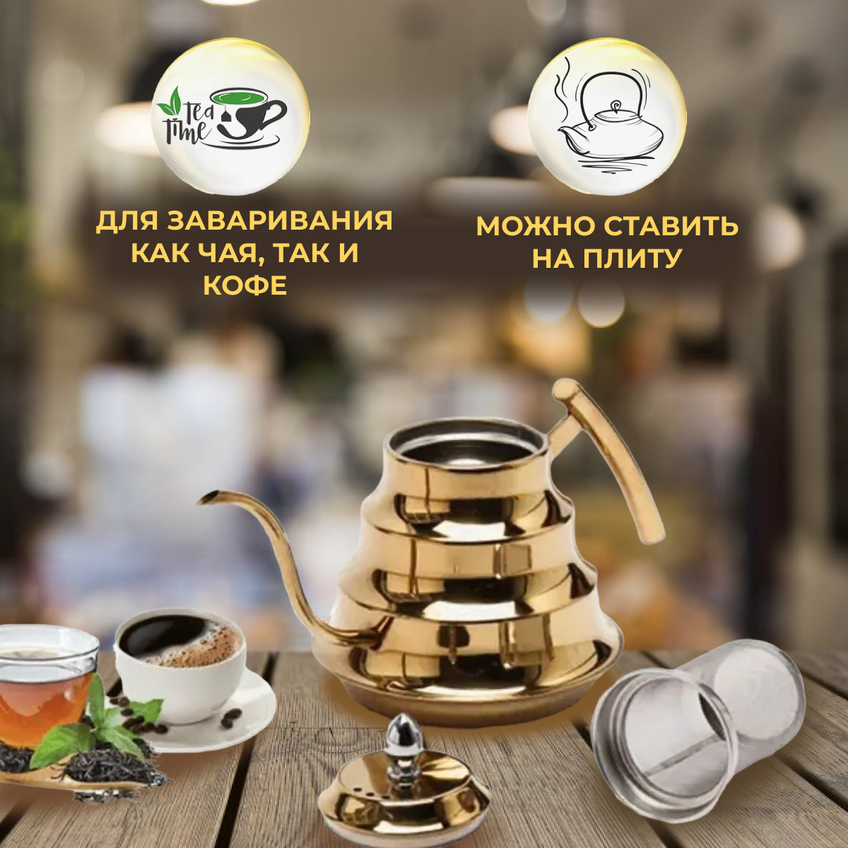 Чайник заварочный "Аладдин" с длинным носиком, 1200 мл, золотой интересное: