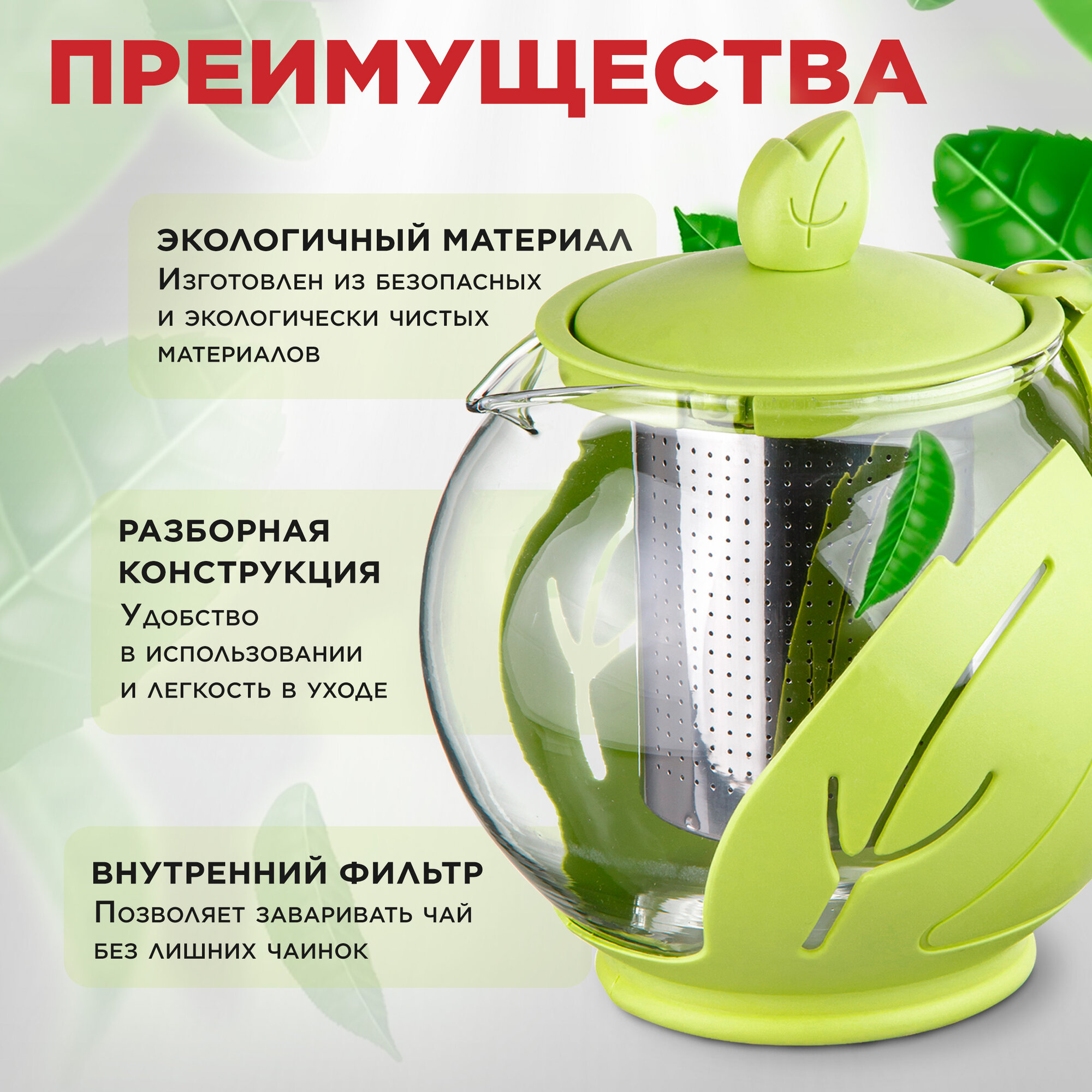 Купить Заварочный чайник стеклянный PERFECTO LINE Leaf 0,75 л (52-750000)
