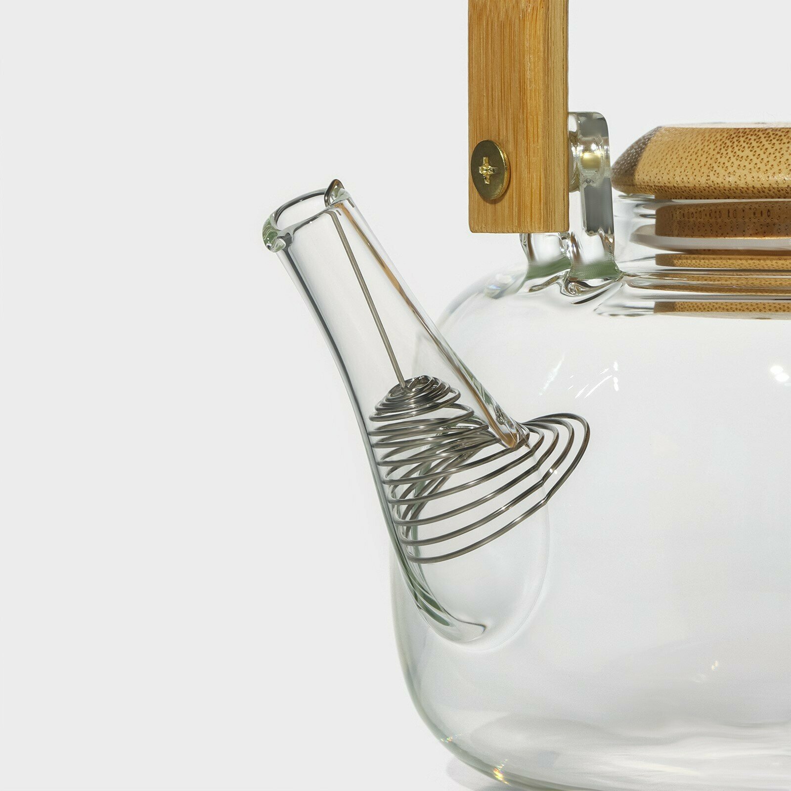 Чайник стеклянный заварочный с бамбуковой крышкой и металлическим фильтром «Эко. Бабл», 800 мл, 18×13,5×12,5 см интересное: