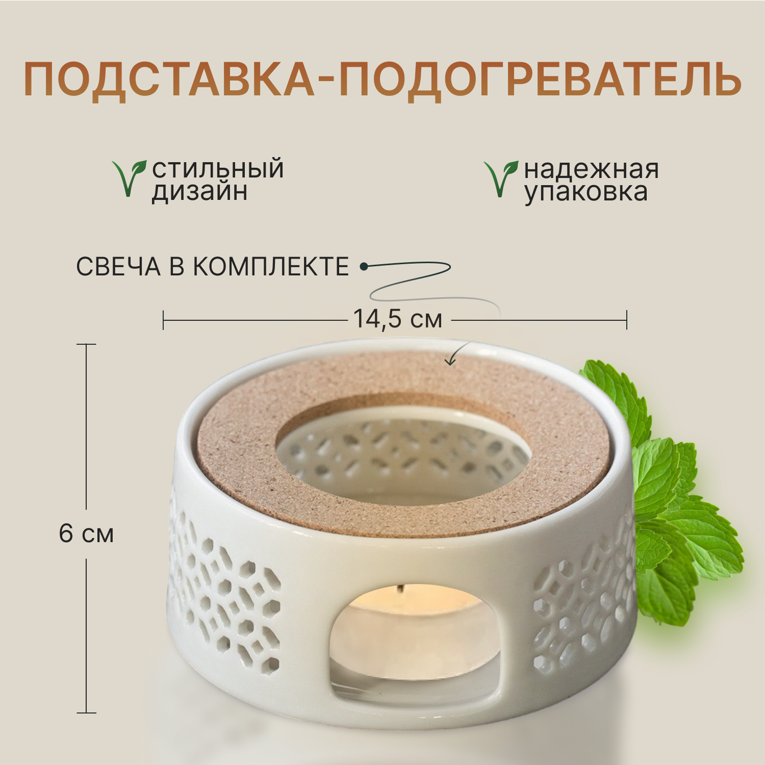 Заварочный чайник с бамбуковой крышкой и керамической подставкой + свеча
