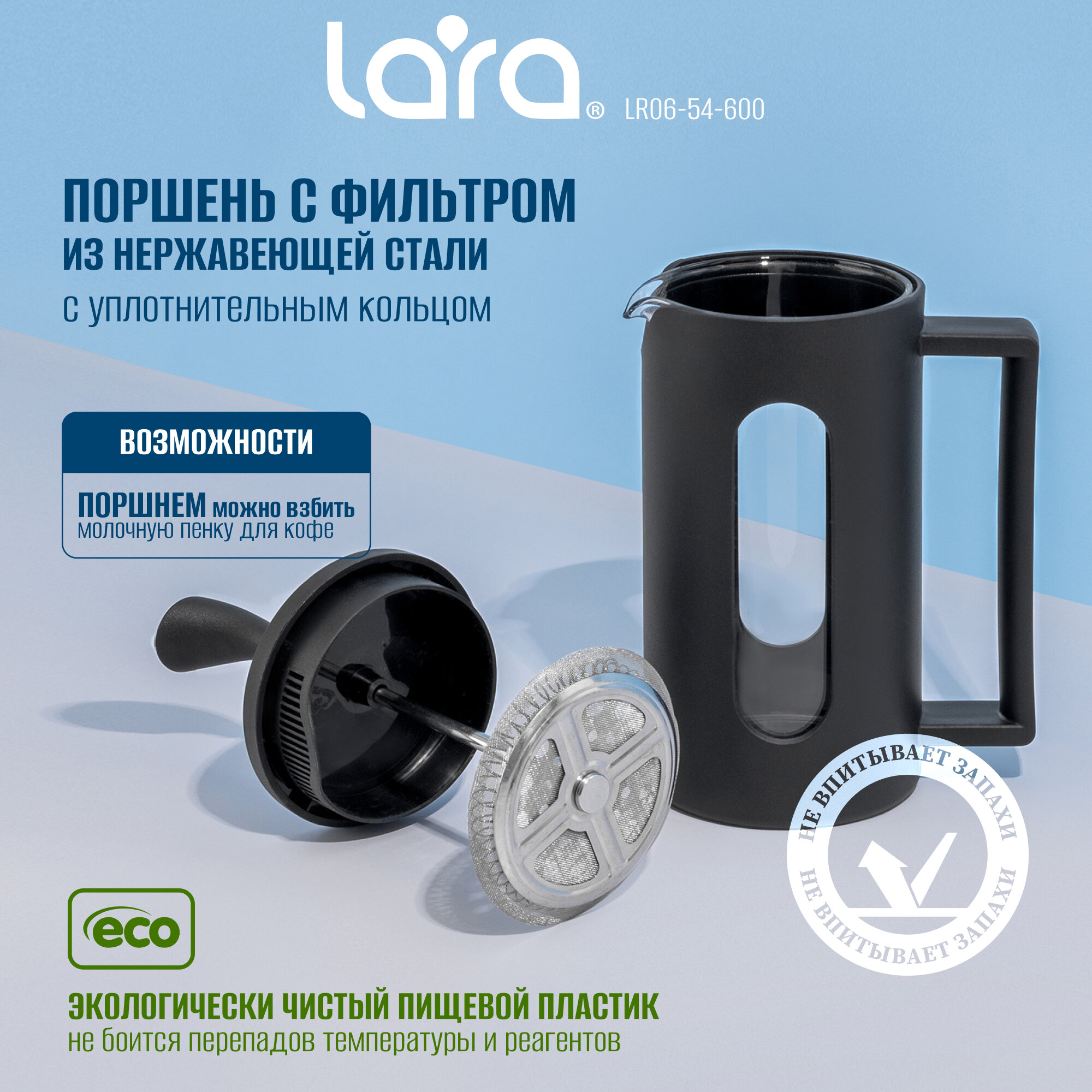 Френч пресс для чая LARA LR06-54-600/ 0,6л/ черный интересное: