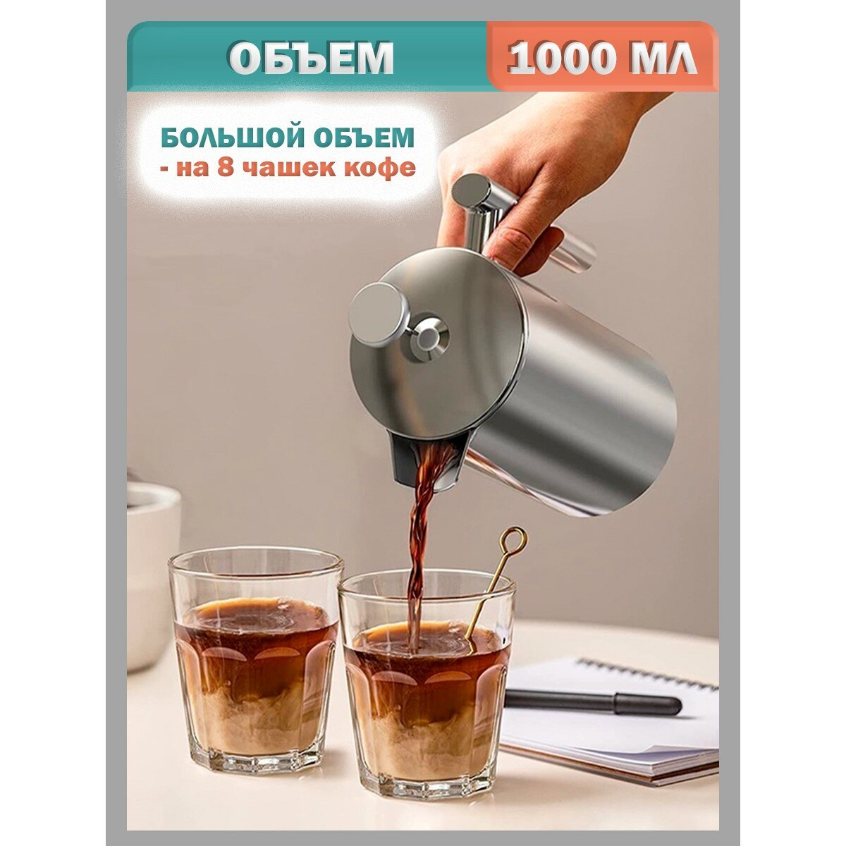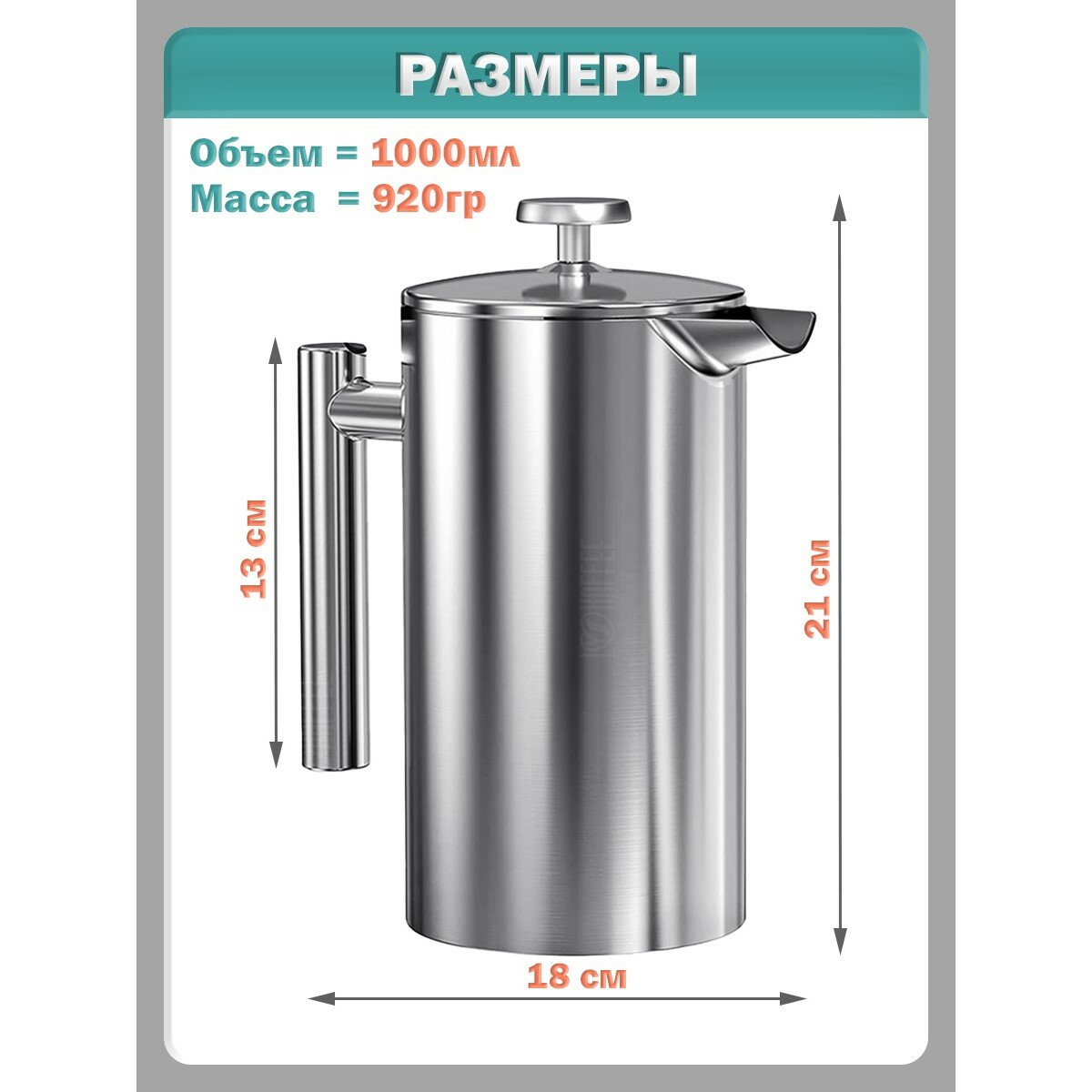Френч-пресс для кофе и чая, кофейник, заварник, нержавеющая сталь - 1000 мл интересное:
