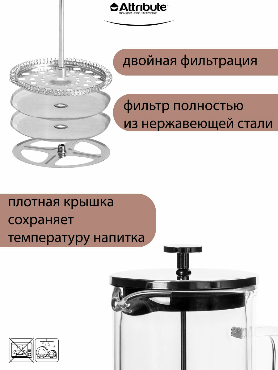 Френч-пресс Attribute DOUBLE WALL 1000мл+аксессуары (ATF300)
