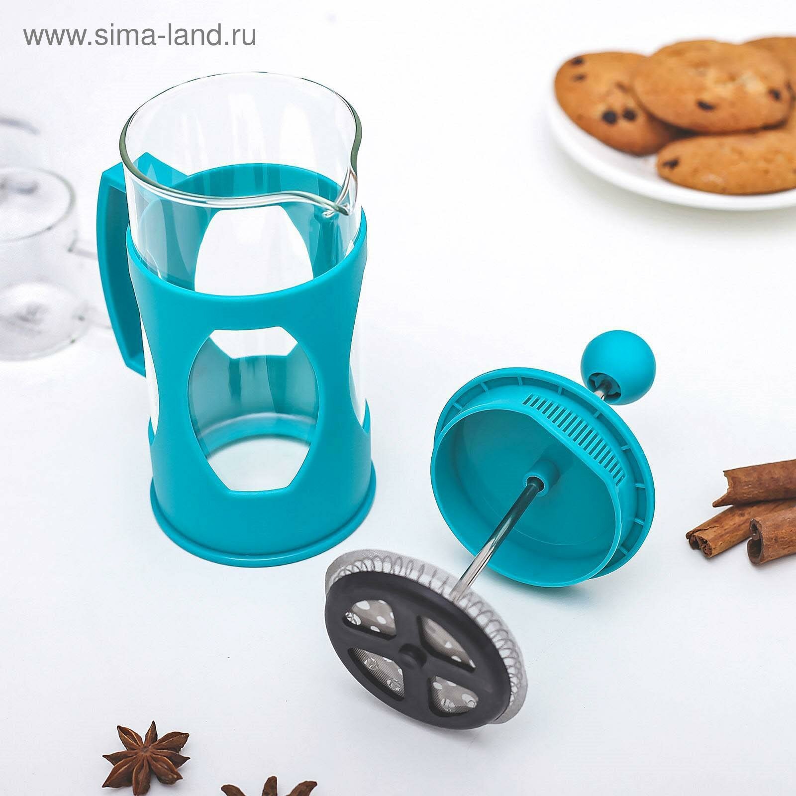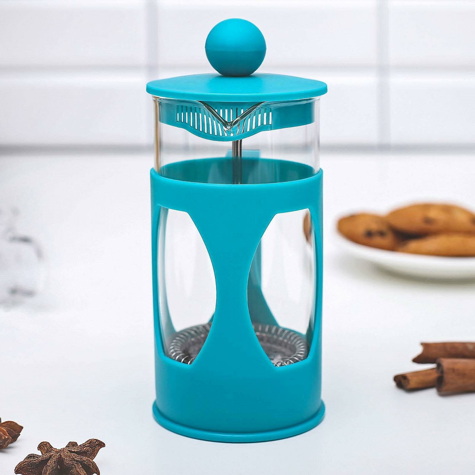 Купить Чайник заварочный френч - пресс Доляна «Оливер», 350 мл, стекло, цвет бирюзовый