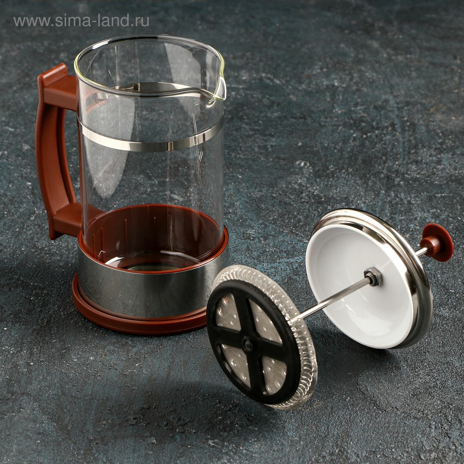 Купить Чайник заварочный френч - пресс Доляна «Риц», 600 мл, стекло, цвет коричневый