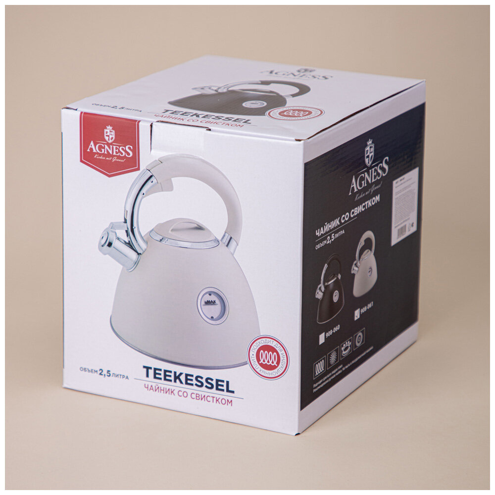 Купить Чайник agness со свистком, серия тюдор, 2,5л термоаккумулирующее дно,индукция,индикатор уровня воды