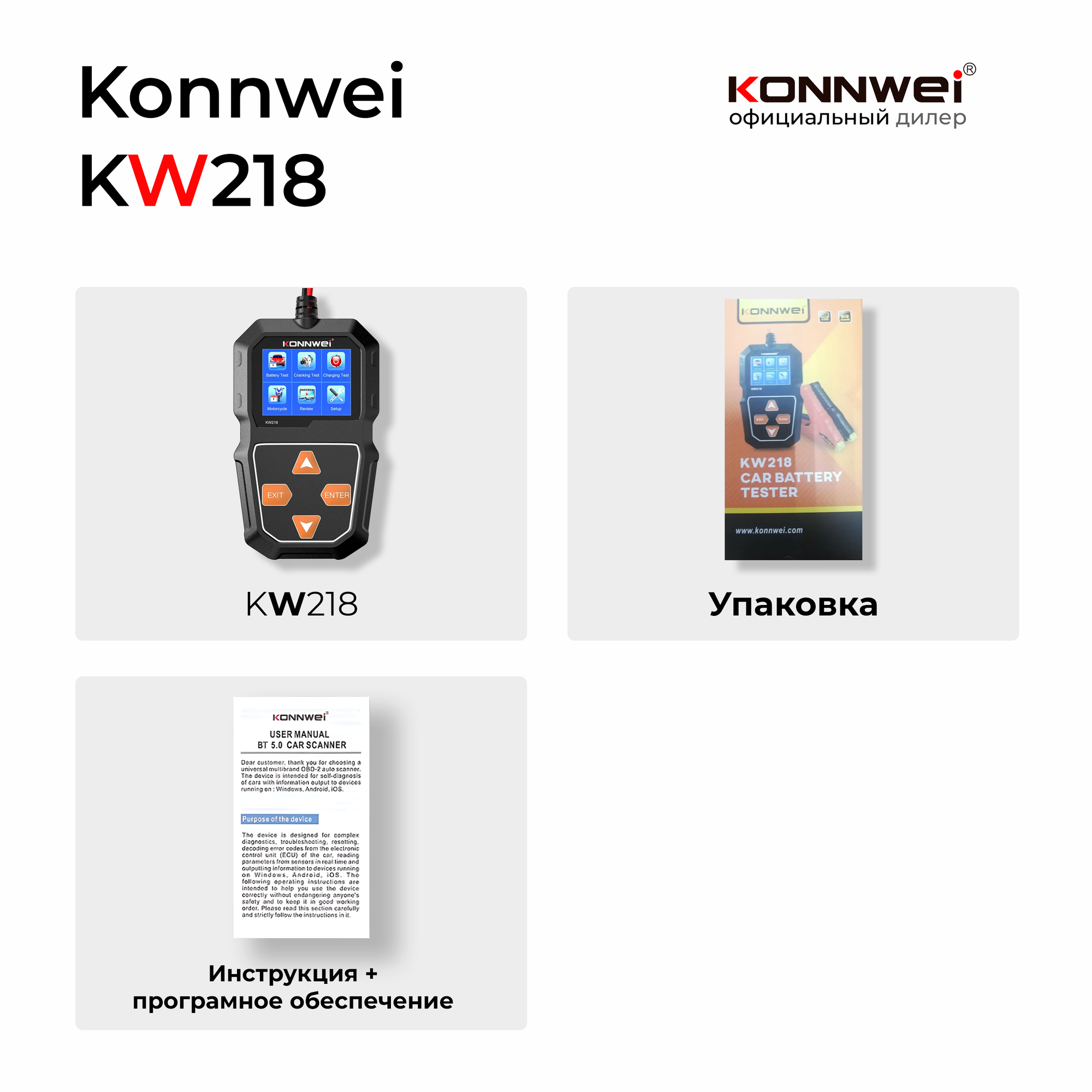 Купить Тестер аккумуляторных батарей АКБ Konnwei KW218 для всех автомобилей, версия 2024 года