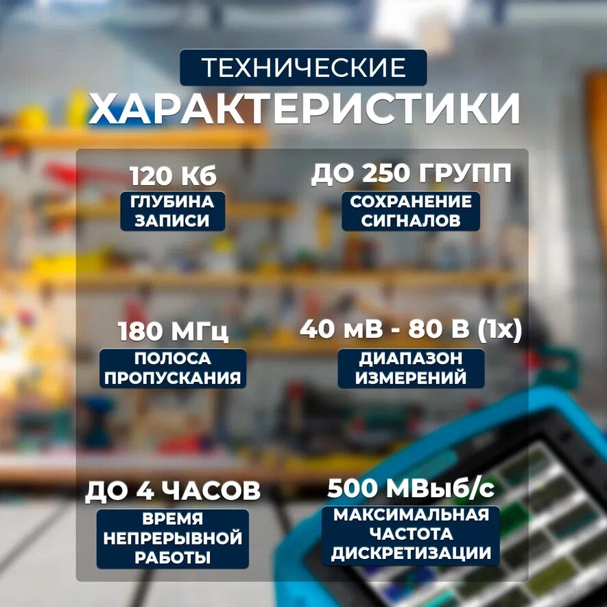 | Дополнительная информация | комплектация: осциллограф FNIRSI DPOX180H, USB кабель, щуп для осциллографа 2 шт., блок питания, инструкция; емкость литиевой батареи 3000 мАч; до 4 часов непрерывной работы |