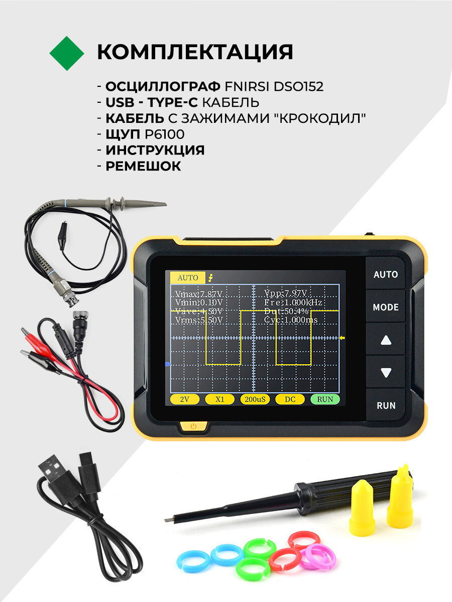 Цифровой осциллограф 3 в 1, портативный мультиметр, генератор сигналов со встроенным аккумулятором