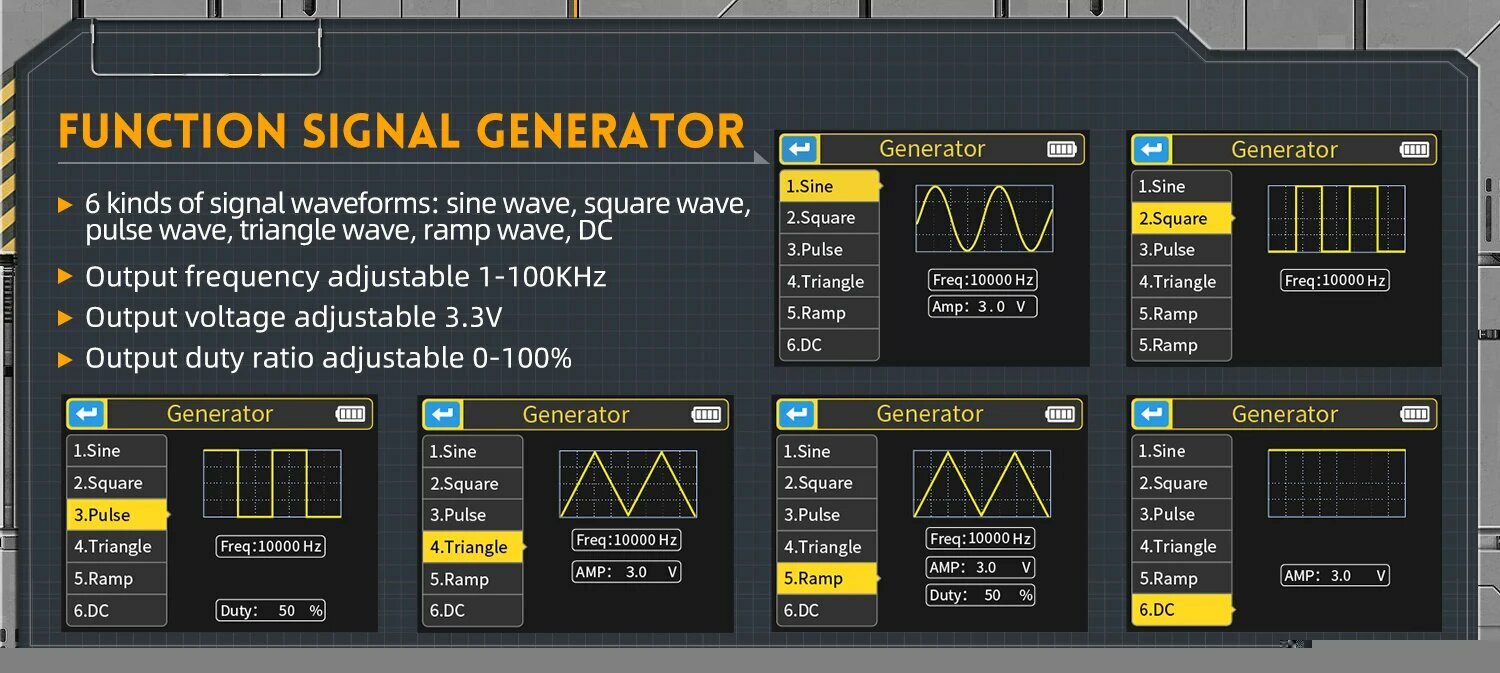 Цифровой осциллограф 3 в 1, портативный мультиметр, генератор сигналов со встроенным аккумулятором
