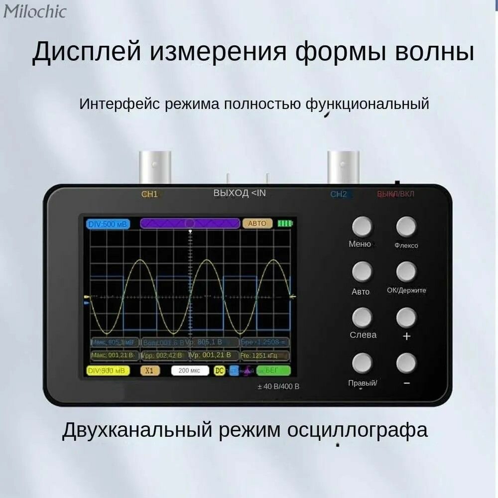 Цифровой осциллограф 3 в 1, портативный мультиметр, генератор сигналов со встроенным аккумулятором