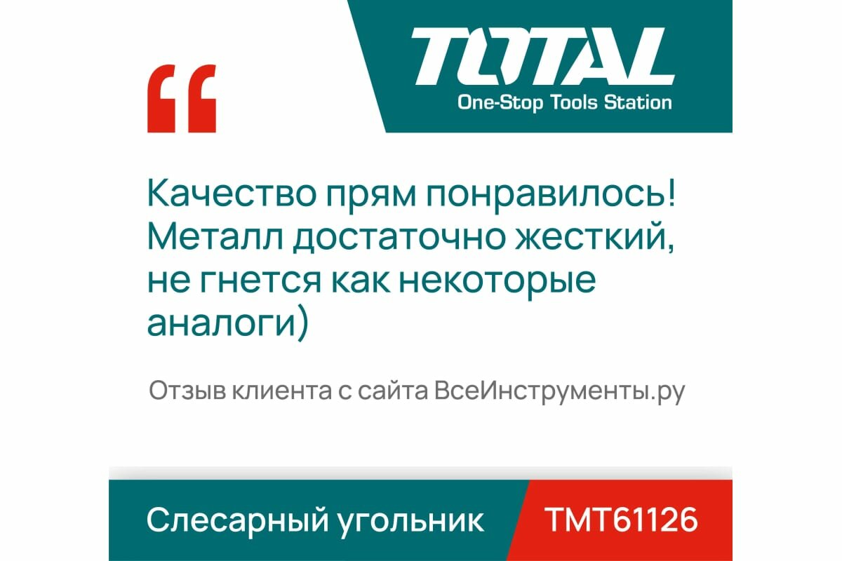 Ниже Вы можете прочитать отзывы на Угольник Total, слесарный, 300mm(12"), ознакомится с подробными характеристиками, посмотреть интересные обзоры и фотографии на Угольник Total, слесарный, 300mm(12").