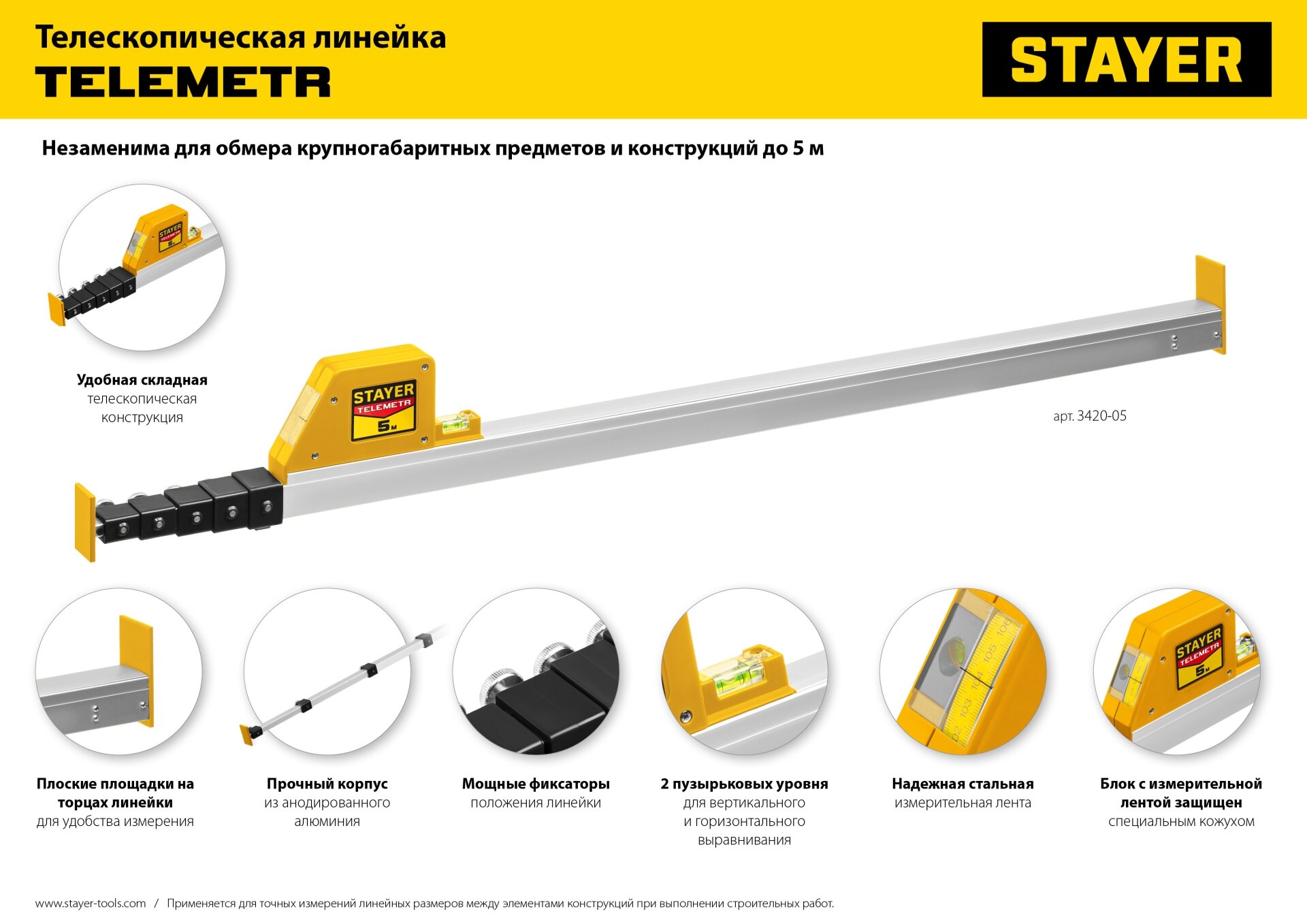 Телескопическая линейка STAYER Telemetr, 3420-05_z01