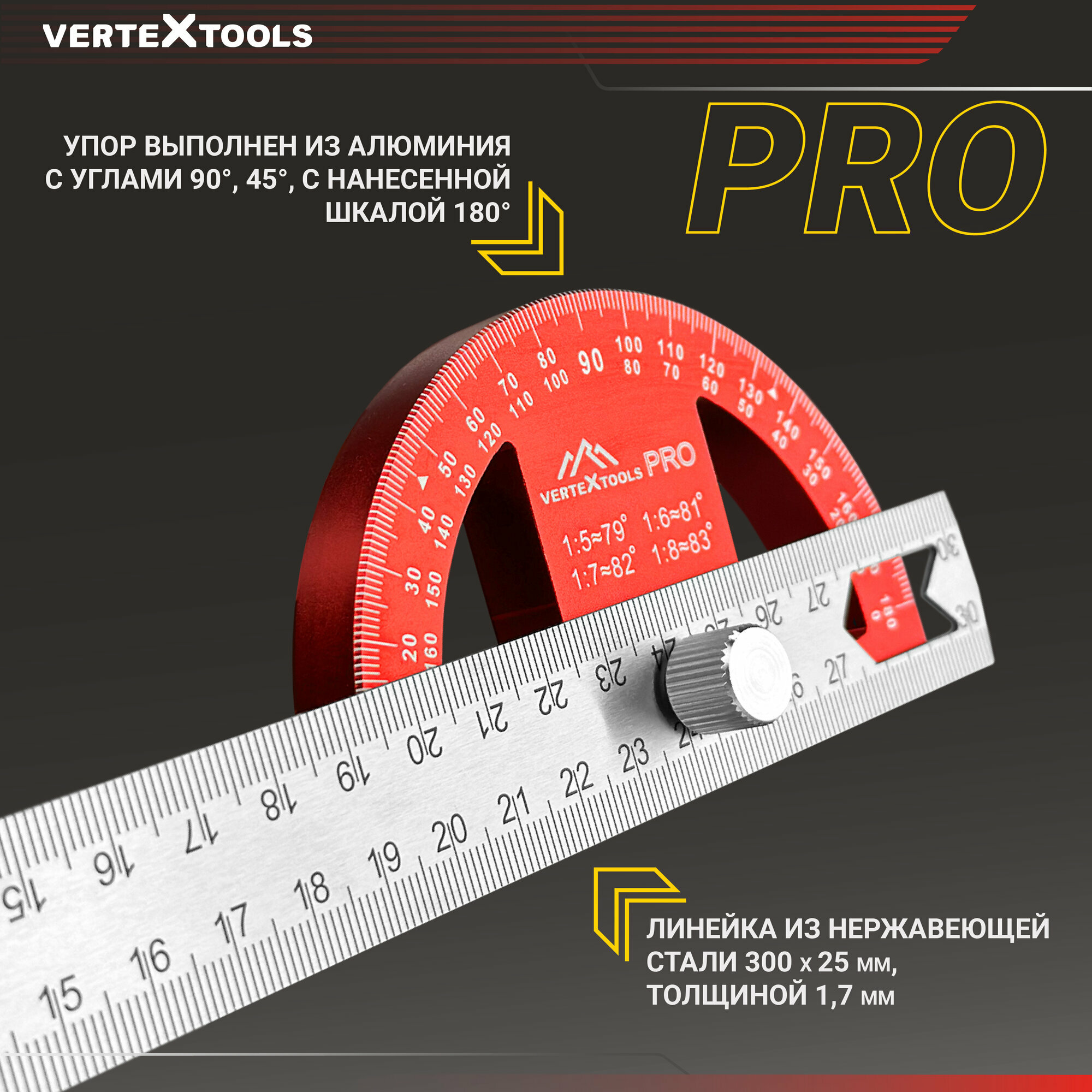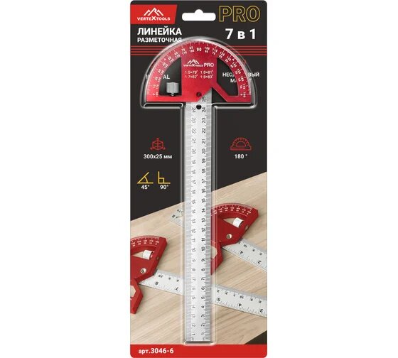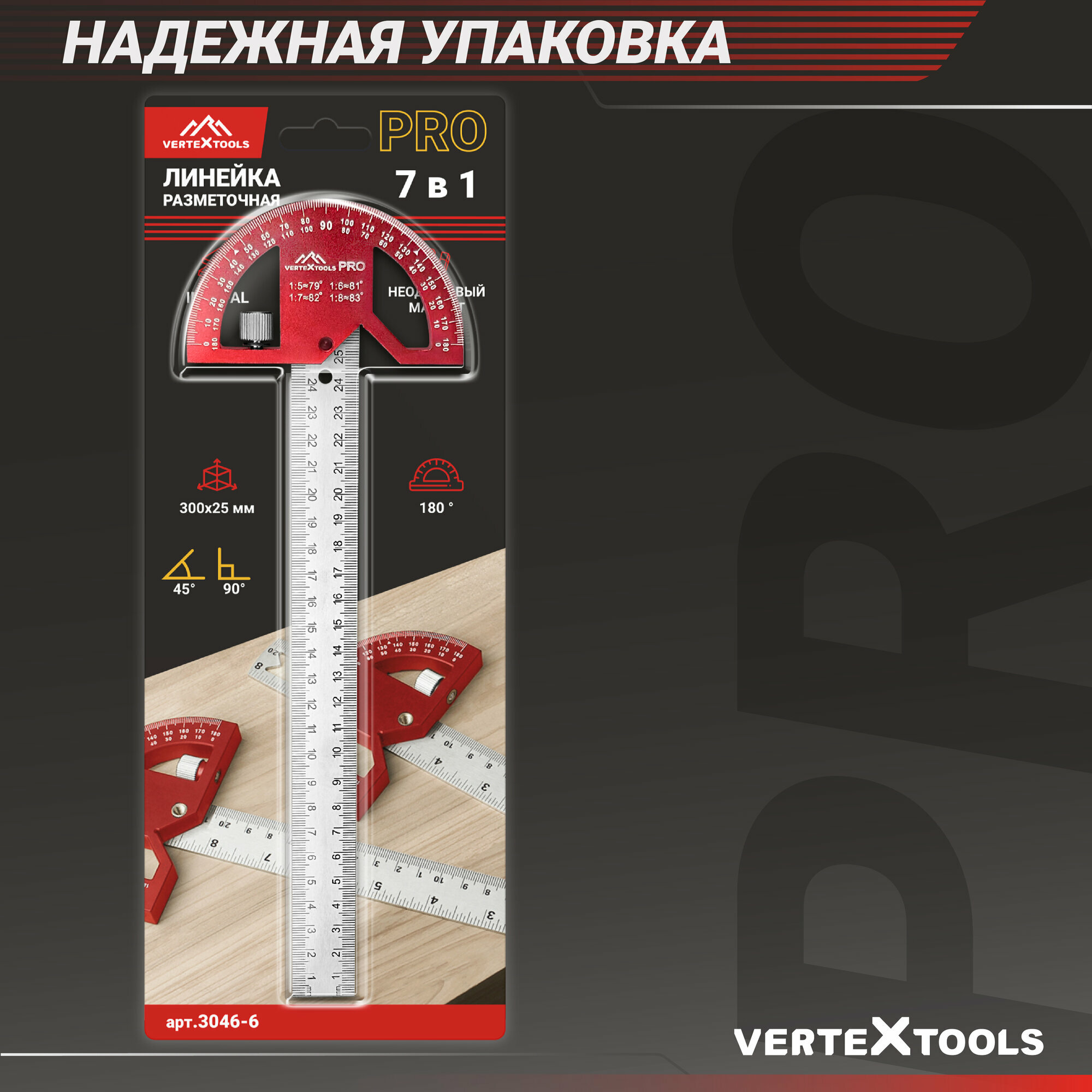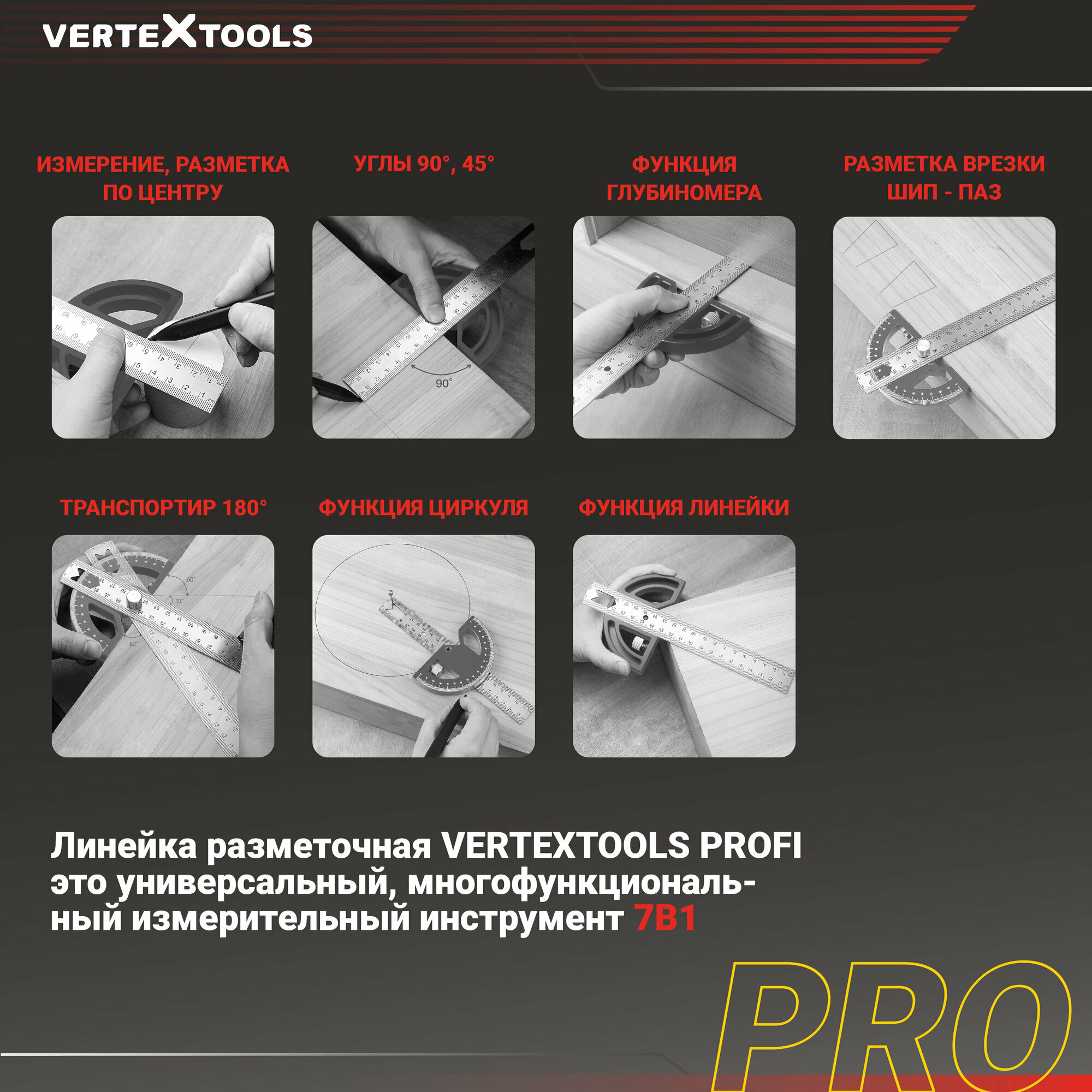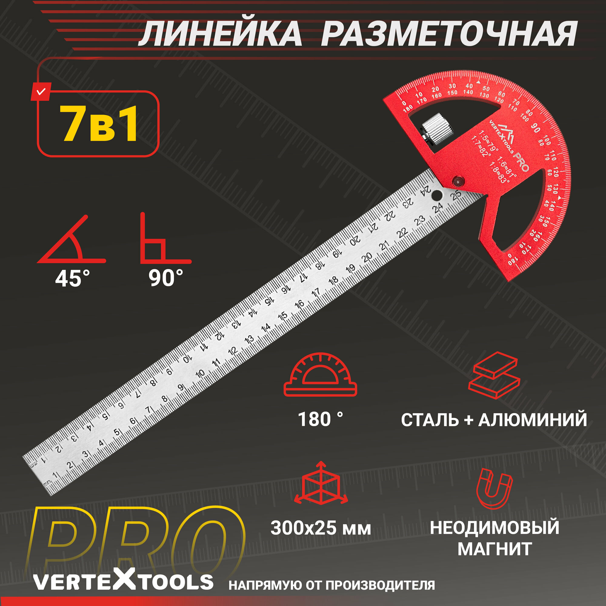 Линейка разметочная 300мм. 7 в 1 VertexTools INOX+AL интересное: