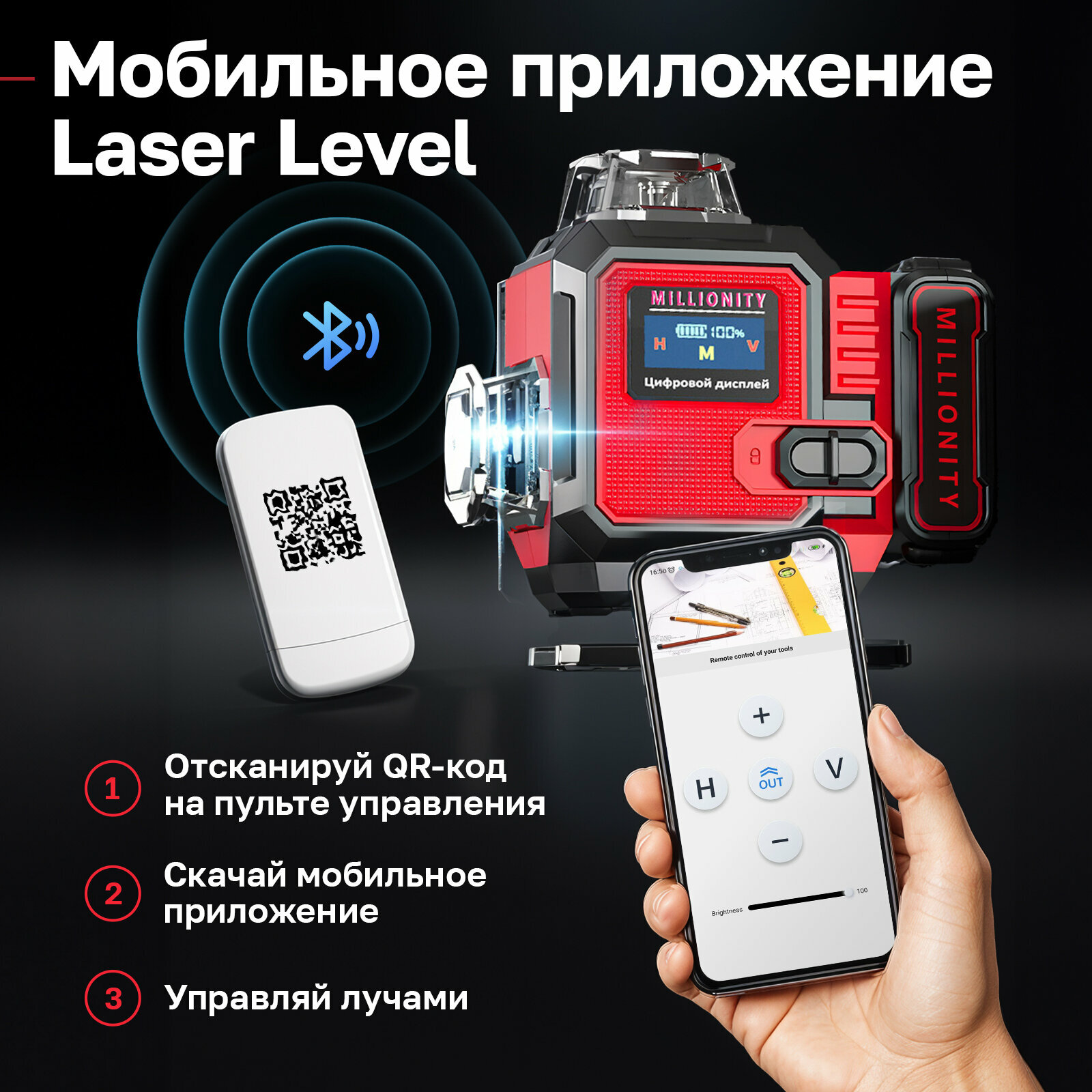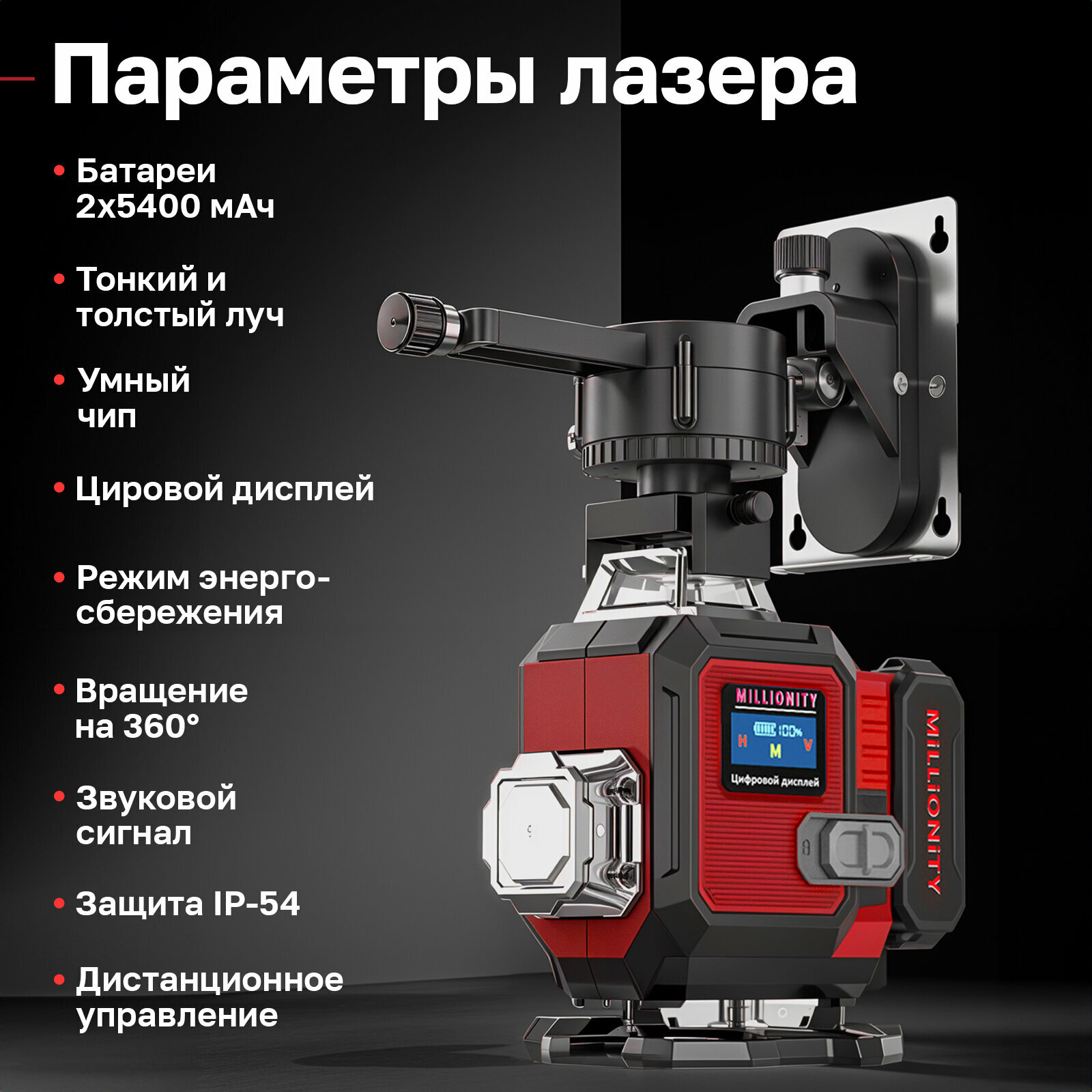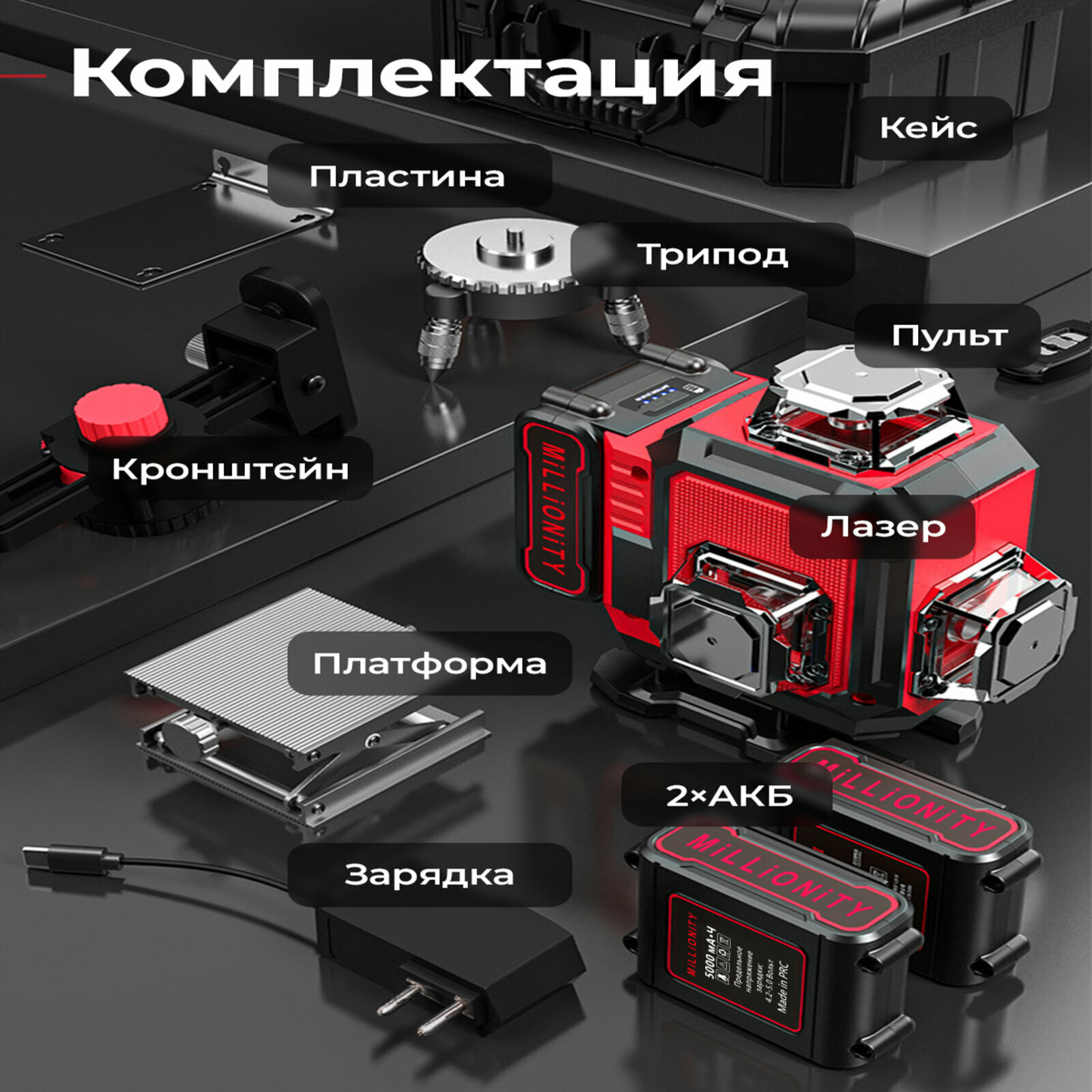 Лазерный уровень Millionity 4D 360°, Профессиональный нивелир, 16 линий, зеленый луч, с аксессуарами в кейсе. интересное: