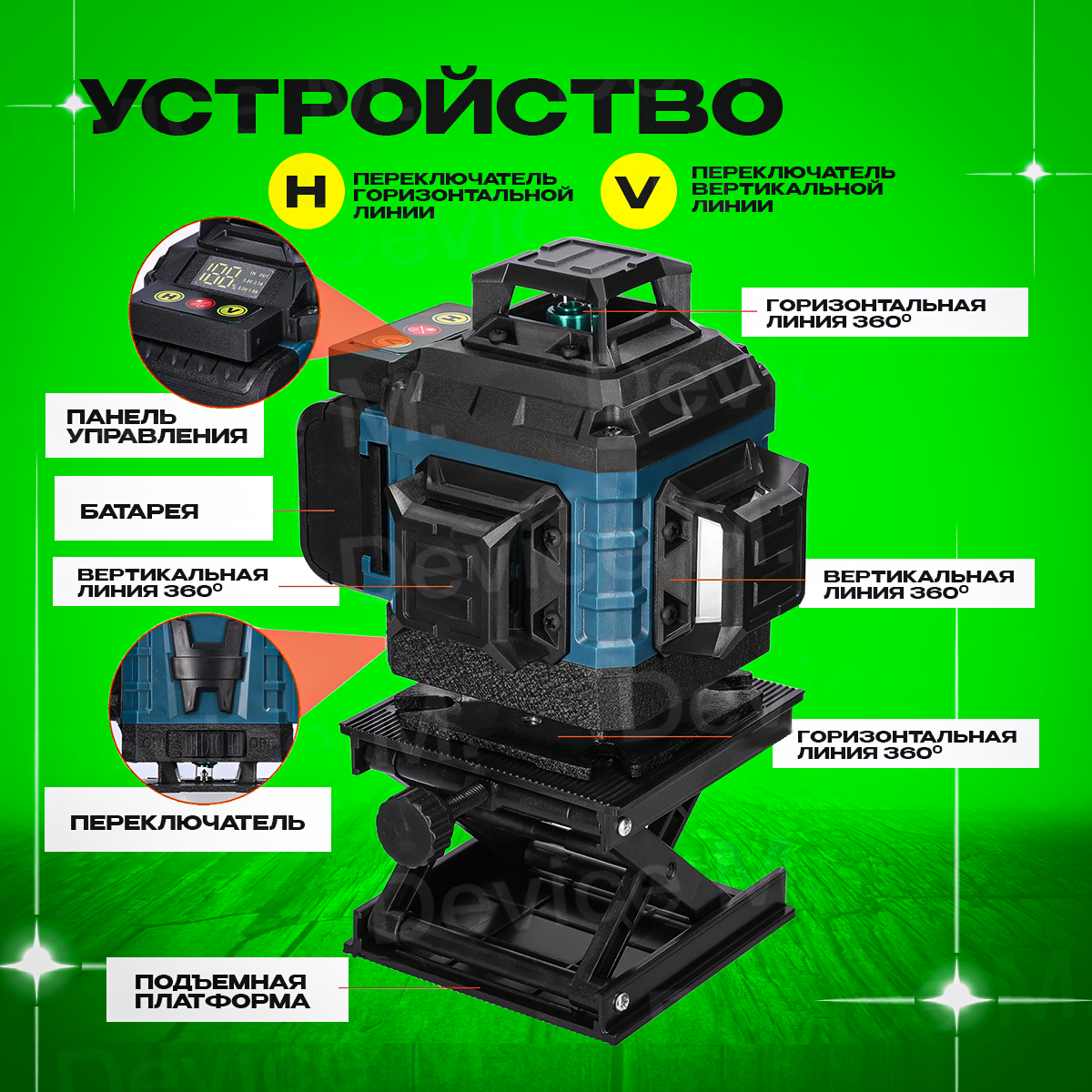 Лазерный уровень 4D нивелир 16 лучей / строительный / 12 предметов со штативом интересное: