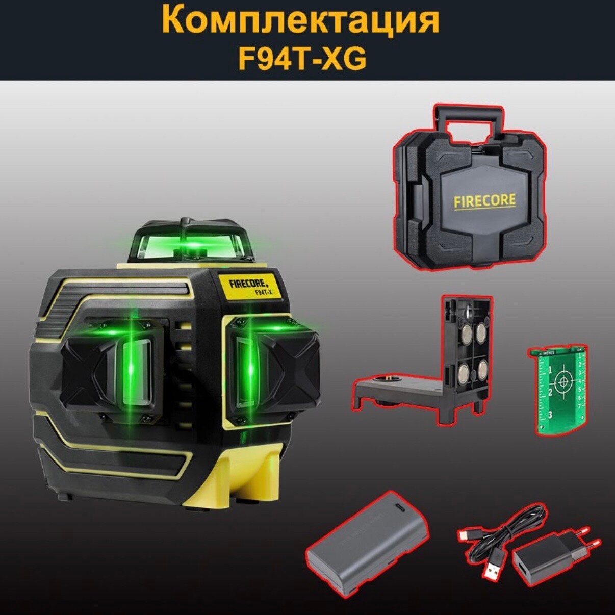 Лазерный уровень Firecore F94T-XG , 12 лучей , в кейсе интересное: